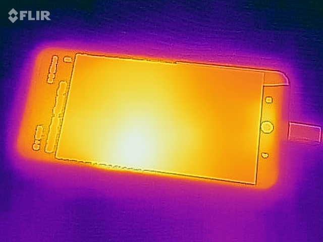 However, the smartphone gets quite warm during operation; we measured 45.7 °C. However, this warming cleverly occurs in the center of the smartphone, where the hands are not in landscape mode.