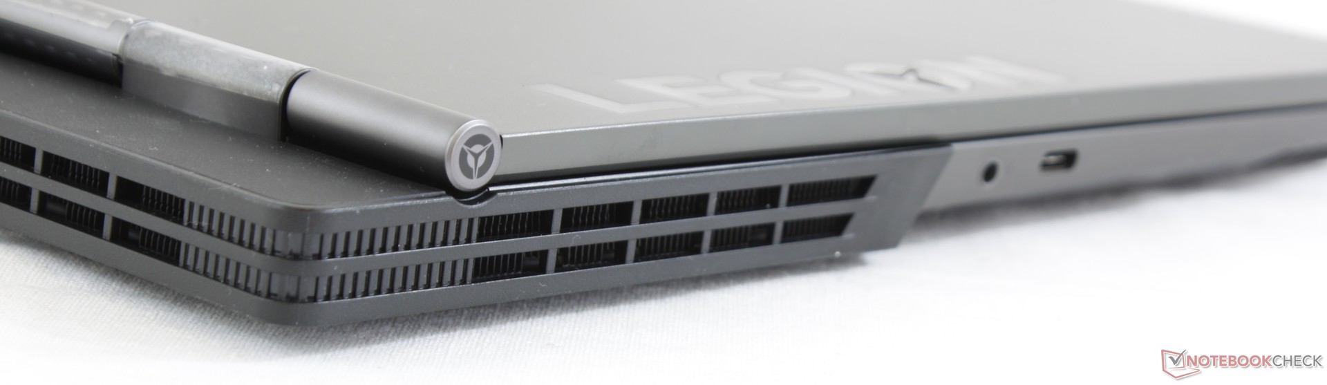 Port options are identical to the Legion Y530 except that the USB Type-C port is now compatible with Thunderbolt 3 devices. Port positioning, however, is different on the Legion Y730. The USB Type-C port has swapped places with the USB Type-A port along the left edge. Most of the ports are still along the back since the ventilation grilles occupy a large portion of the two rear corners.