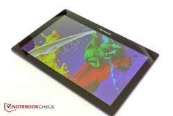 Lenovo supplies only the standard Android keyboard with Swype supported as well. Other keyboards can be downloaded from the Google Play Store. Thanks to the integrated pager motor, haptic feedback is provided as well if the user so desires. Typing on the 10-inch display is of course much easier than on smaller devices and the corresponding error rate is lower. Thanks to the curved back the tablet is easy to hold while the slightly rubberized coating prevents excessive slipping. The physical buttons don't provide a lot of feedback and could be a little larger in our opinion, but they work pretty well overall.