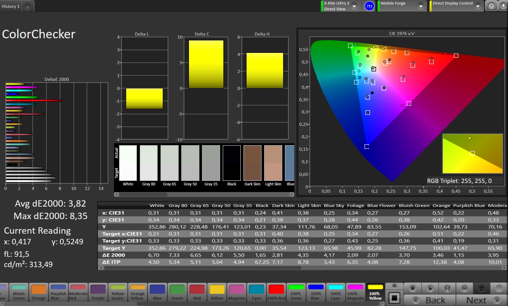 | Colorchecker dE 2000 max. * | 7.77 | 6.82 | 3.82 | |