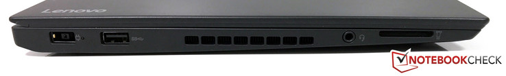 Lenovo only changed one thing in terms of the ports compared to the previous ThinkPad T460s: The Mini-DisplayPort was replaced by a modern USB-C port (Gen.2) including Thunderbolt 3 support with the full 40 Gbps. The port also supports power delivery (2.0) and video output via DisplayPort 1.2a. Our test model is also shipped with a corresponding 65-watt USB-C power adapter. However, the location at the center of the right side is a problem. You cannot use an external mouse on the right side and the cable is annoying here in general – it would have been much better towards the rear.