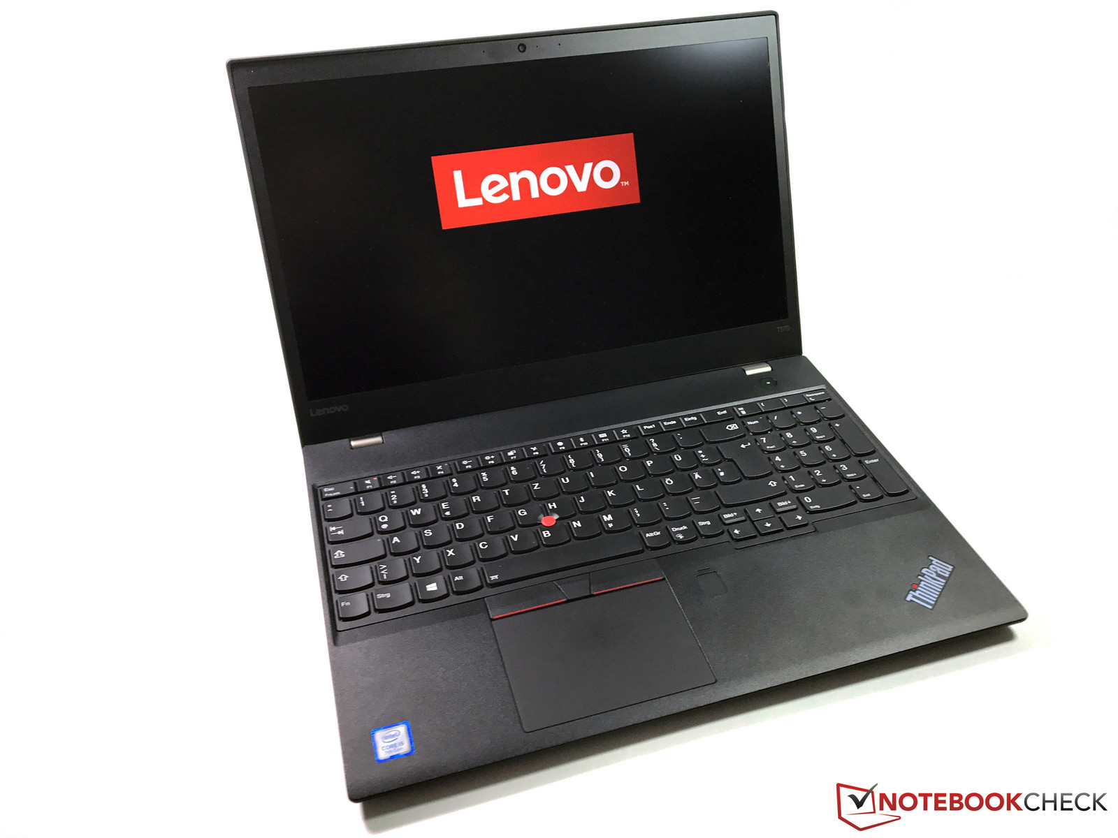 The whole construction is made from glass-fiber reinforced plastic. The tactile feel is identical to that of the smaller ThinkPad T470, and the surface feels much rougher compared to the velvety-soft surfaces of the more expensive ThinkPad T470s, for example. The new case of the 15-inch laptop is very compact and very well-built. Neither pressure nor twisting attempts are a big challenge for the base, only the central keyboard area will flex a bit under a lot of force. Lenovo says the system was also tested according to military specifications (MIL-STD-810G), but there are no specifics about the individual tests.