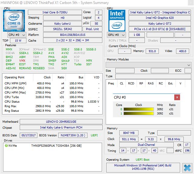 | Lenovo ThinkPad X1 Carbon 2017-20HR0021GE HD Graphics 620, i5-7200U, Toshiba THNSF5256GPUK | Lenovo ThinkPad X1 Carbon 2017-20HQS03P00 HD Graphics 620, i7-7500U, Samsung PM961 NVMe MZVLW512HMJP | Lenovo ThinkPad X1 Carbon 20FB-005XUS HD Graphics 520, 6300U, Samsung SM951 MZVPV256 m.2 | Lenovo ThinkPad X1 Carbon 20FB003RGE HD Graphics 520, 6500U, Samsung SSD PM871 MZNLN256HCHP | Lenovo ThinkPad T470s-20HGS00V00 HD Graphics 620, i7-7600U, Samsung SSD PM961 1TB M.2 PCIe 3.0 x4 NVMe (MZVLW1T0) | HP EliteBook Folio 1040 G3 HD Graphics 520, 6300U, Samsung SM951 MZVPV256HDGL m.2 PCI-e | Fujitsu LifeBook U747 HD Graphics 620, i5-7200U, Samsung MZYTY256HDHP | |