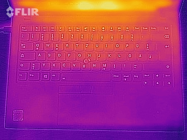 (+) The palmrests and touchpad are cooler than skin temperature with a maximum of 30.7 °C / 87.3 F and are therefore cool to the touch.