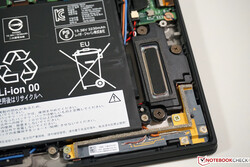 It is comparatively easy to remove the bottom cover, which is only secured by five regular Philips screws. The lid pops up a bit after you loosen the screws and you can just lift it up. We are very happy about that, especially after the tricky access to the internals of the ThinkPad T490. Once you are inside, there is unfortunately not much to do. You can access the fan, the battery, the M.2-SSD, and the M.2 WWAN module. The wireless module on the other hand is soldered onto the mainboard and a part of its functionality is handled by the CPU.