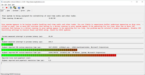 There are currently some issues with the latencies, because the tool LatencyMon shows high peaks both with an activated or deactivated wireless connection. The previous model was better in this regard, so we hope Lenovo will address this issue with a update. The first Bios update to version 1.04 did not improve the situation.