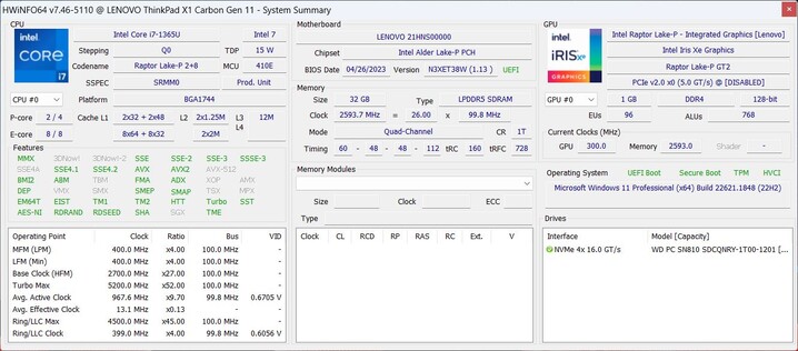 | Lenovo ThinkPad X1 Carbon G11-21HNS00000 Iris Xe G7 96EUs, i7-1365U, WDC PC SN810 1TB | Lenovo ThinkPad X1 Carbon G10 Core i7-1265U Iris Xe G7 96EUs, i7-1265U, Kioxia BG5 KBG5AZNV1T02 | HP EliteBook 840 G9 Iris Xe G7 96EUs, i7-1280P, SK hynix PC801 HFS512GEJ9X101N BF | Dynabook Portégé X40-K Iris Xe G7 96EUs, i7-1260P, Samsung PM991 MZVLQ512HBLU | Huawei MateBook X Pro 2023 Iris Xe G7 96EUs, i7-1360P | Lenovo Yoga Pro 7 14ARP G8 Radeon 680M, R7 7735HS, Samsung PM9A1 MZVL21T0HCLR | Lenovo ThinkPad X1 Carbon G10 21CB00DCGE Iris Xe G7 96EUs, i7-1260P, Samsung PM9A1 MZVL2512HCJQ | |