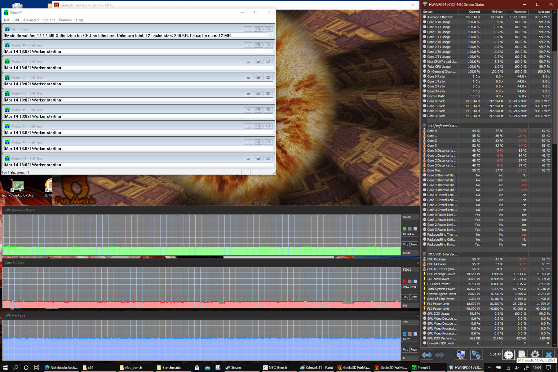 In the stress test with sustained GPU and CPU load, the CPU can only consume 10 W after one hour. This results in clock rates of 800 MHz. In the 3DMark 11 after the stress test, the CPU performed normally, while the GPU performance was 20 % lower than normally.