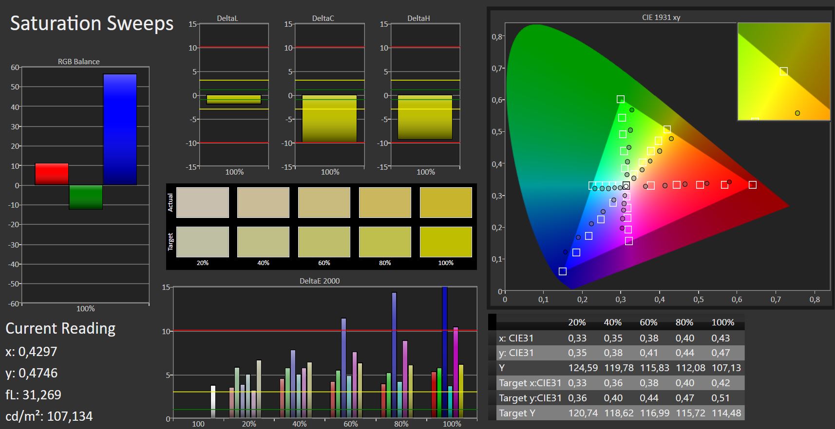 | Greyscale dE 2000 * | 3.51 | 0.98 72% | 1.68 52% | 2.2 37% |