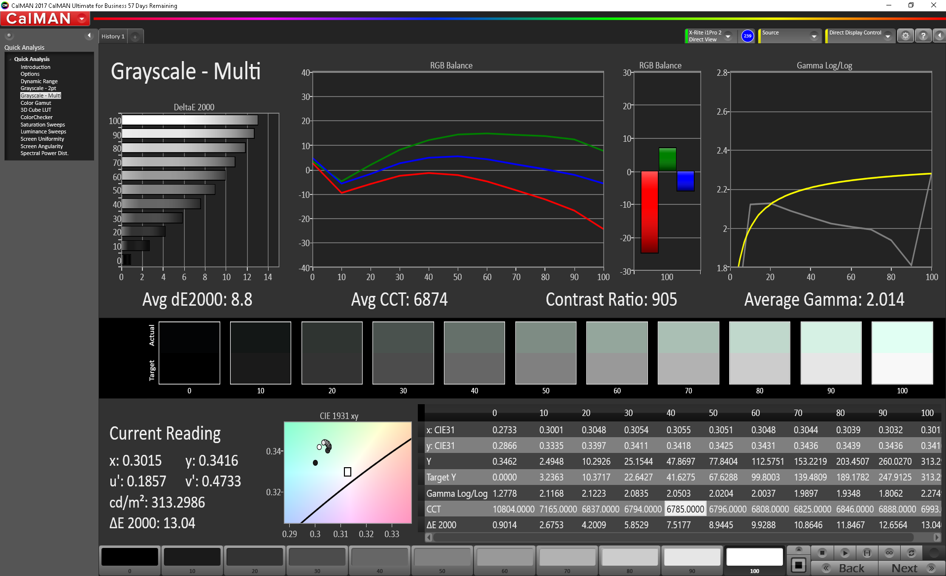 ΔE Greyscale Calman: 8.8 | ∀{0.09-98 Ø5}