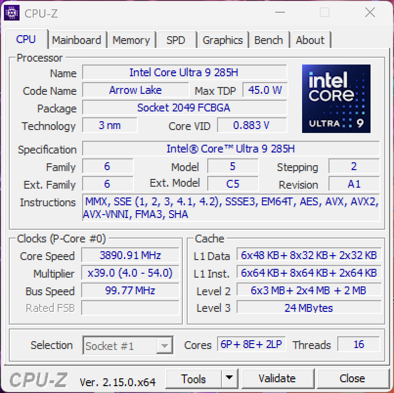 The Core Ultra 9 285H can briefly consume 115 watts and then stabilizes at 75 watts. This means that the CPU performance is good, but also somewhat lower than the AMD Ryzen AI 9 HX 370, which only requires 70/65 watts. Battery operation also shows that the high power limit makes little sense. Here, the processor is allowed to consume a maximum of 95 watts, but can maintain this level for longer before consumption also levels off at 75 watts. The result in the Cinebench 2024 multi-test is even 2% better as a result.
