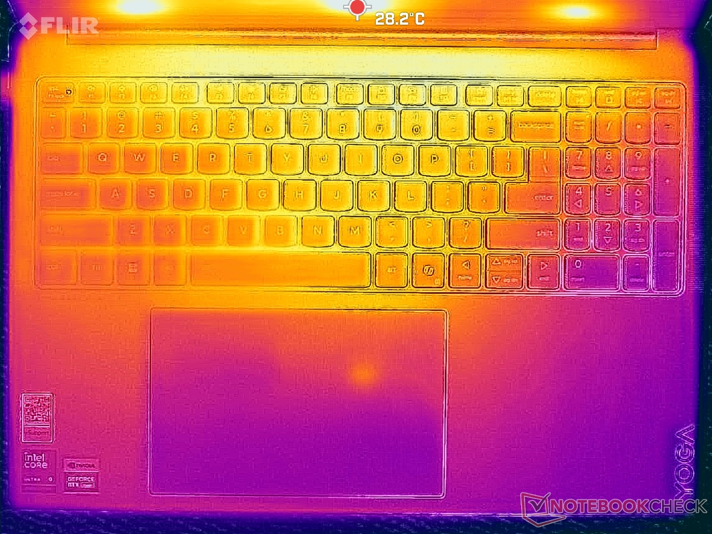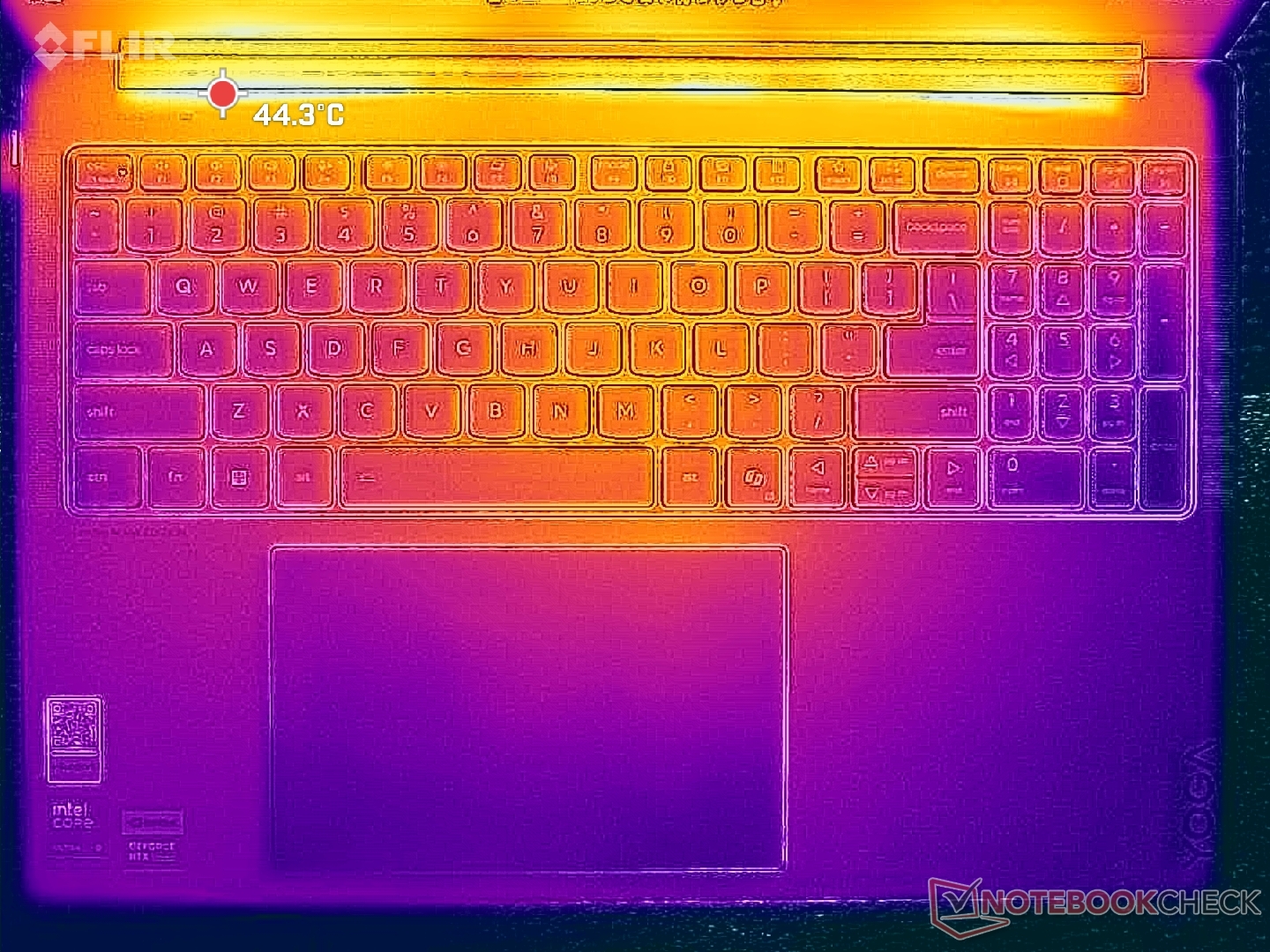 (+) The palmrests and touchpad are cooler than skin temperature with a maximum of 26.2 °C / 79.2 F and are therefore cool to the touch.
