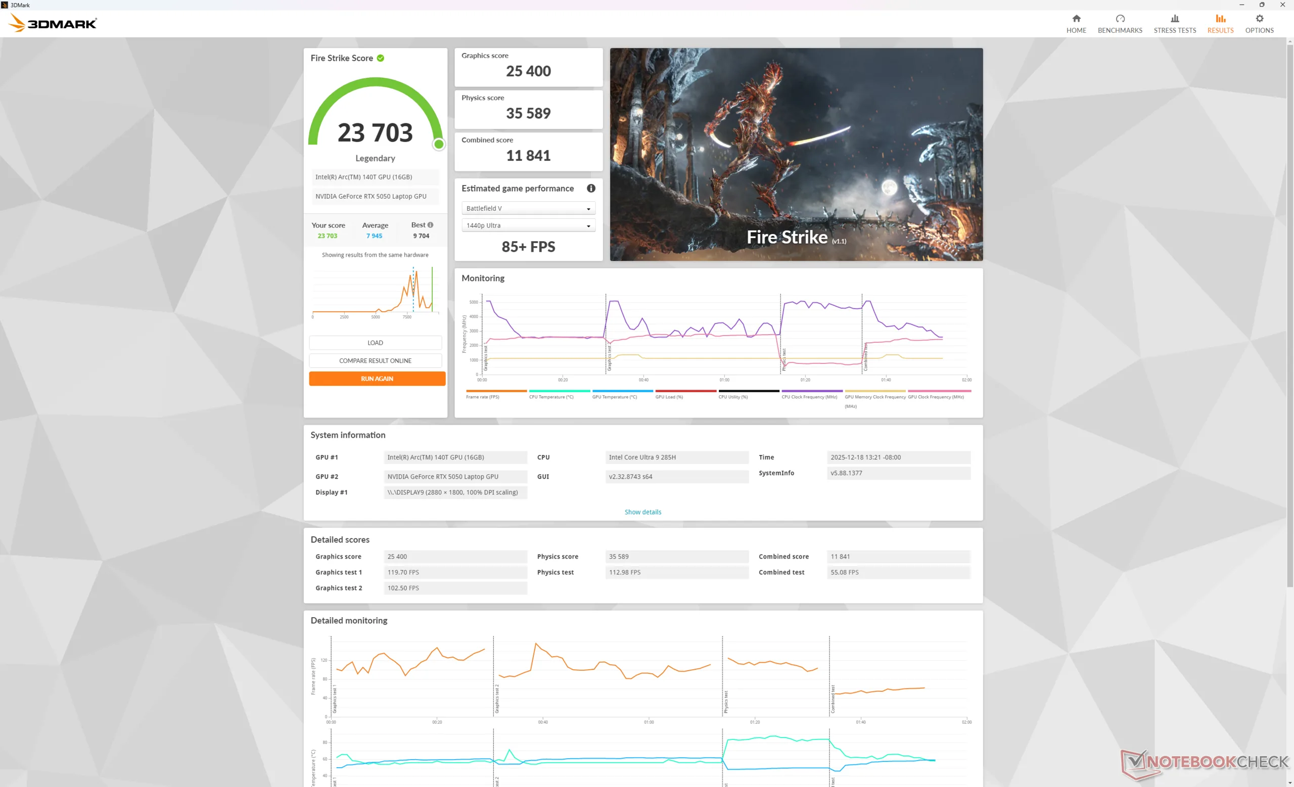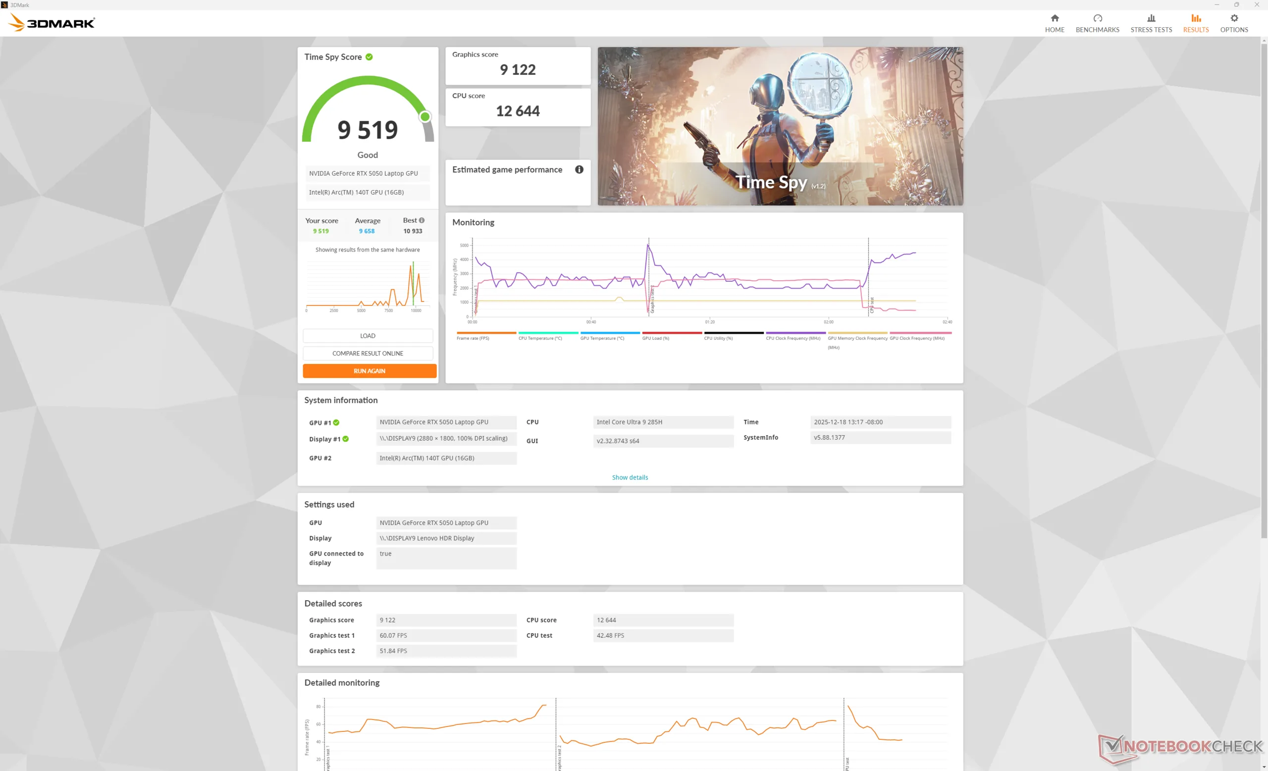 | Average Intel Core Ultra 9 285H, NVIDIA GeForce RTX 5050 Laptop | |