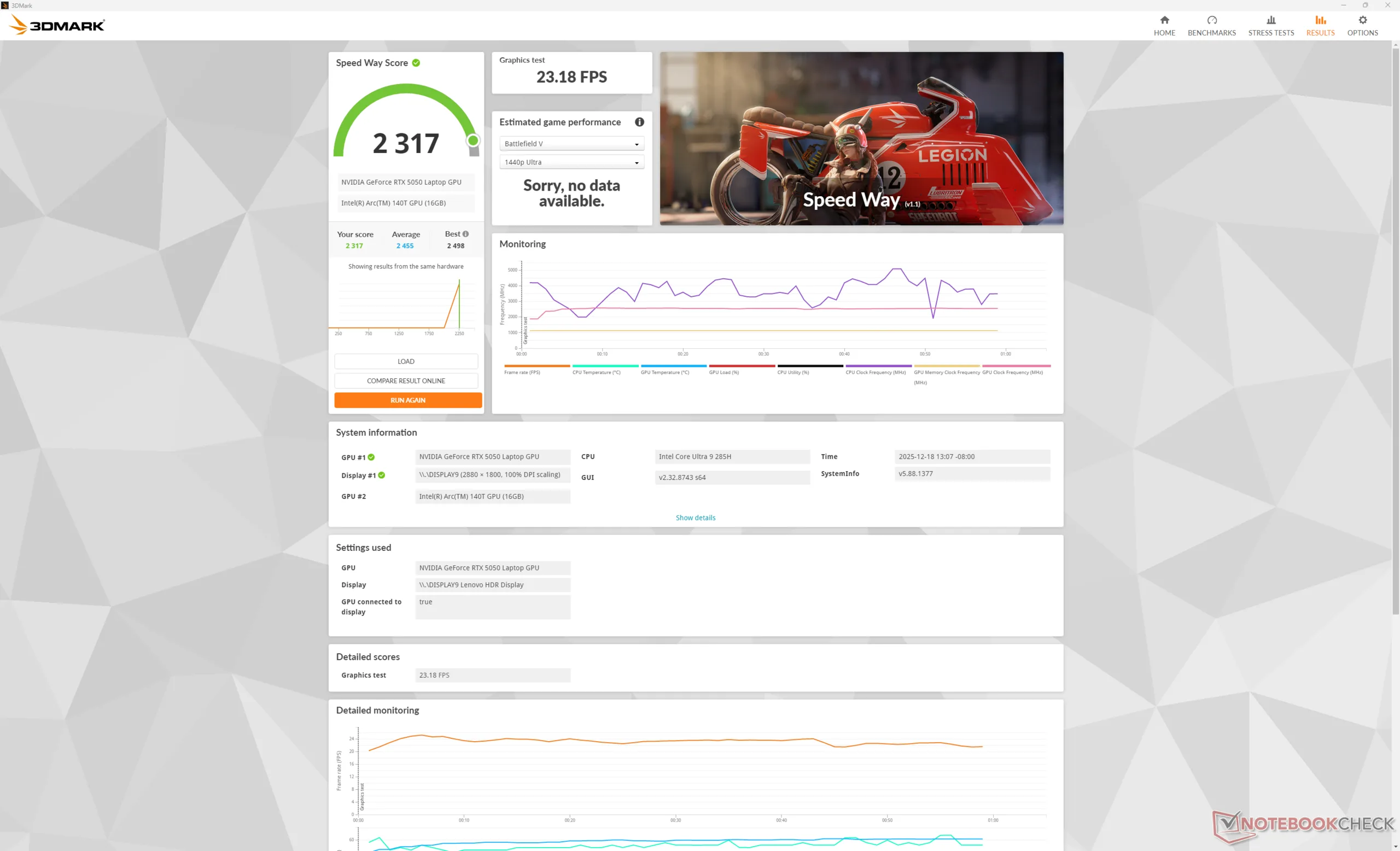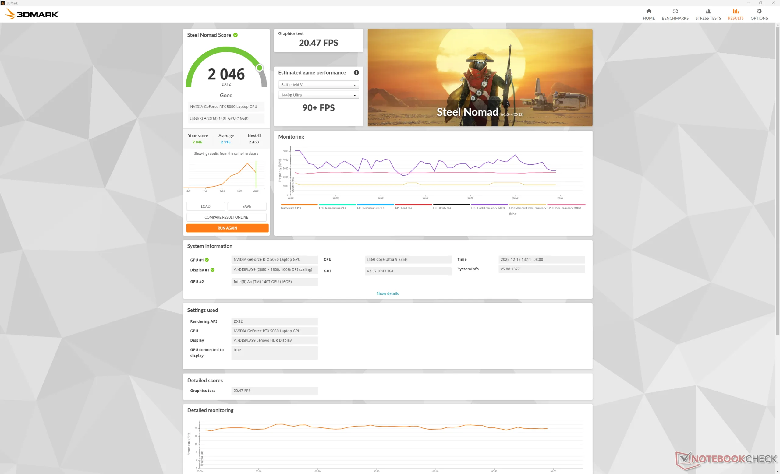 | Average Intel Core Ultra 9 285H, NVIDIA GeForce RTX 5050 Laptop (n=1) | |
