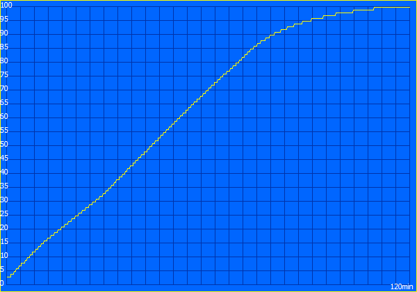 If you watch an HDR video at full brightness, the runtime will only be little more than three hours (196 minutes) and you can drain the battery in little more than one hour under full load with the High Performance mode. A full recharge takes 120 minutes when the device is turned on, and 80 % of the capacity is available after 68 minutes.