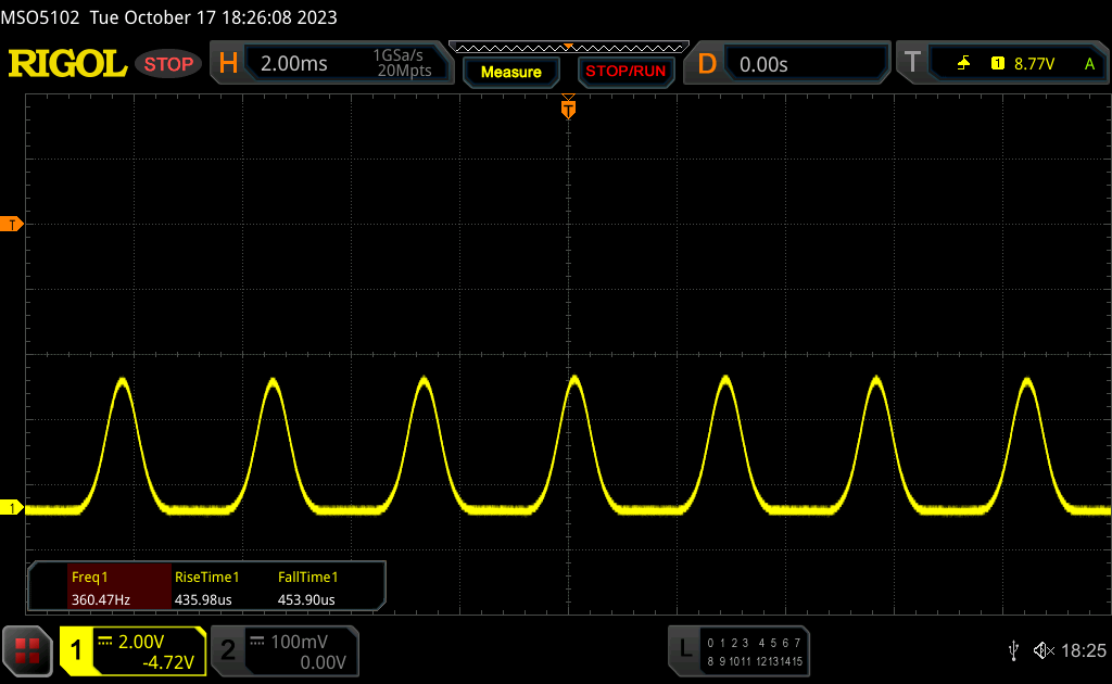 | 0.77 ms ... rise ↗ and fall ↘ combined | ↗ 0.4 ms rise | |