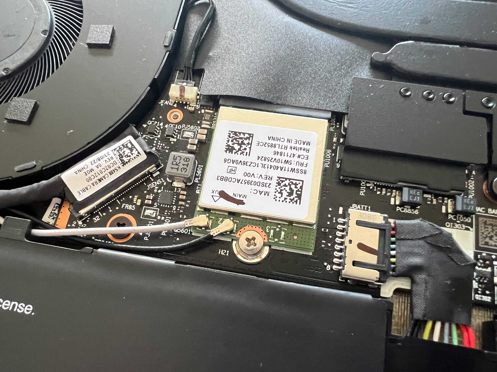Lenovo uses a Wi-Fi adapter from Realtek (8852CE) for the Yoga Slim 7 14, which supports modern 6 GHz networks (Wi-Fi 6E) as well as Bluetooth 5.1. Combined with our reference router from Asus we manage very high and stable transfer rates. With values between 1.7-1.9 Gbps, the Yoga is one of the fastest devices in this respect and we did not notice any connection problems or issues with large downloads during our review period.