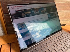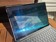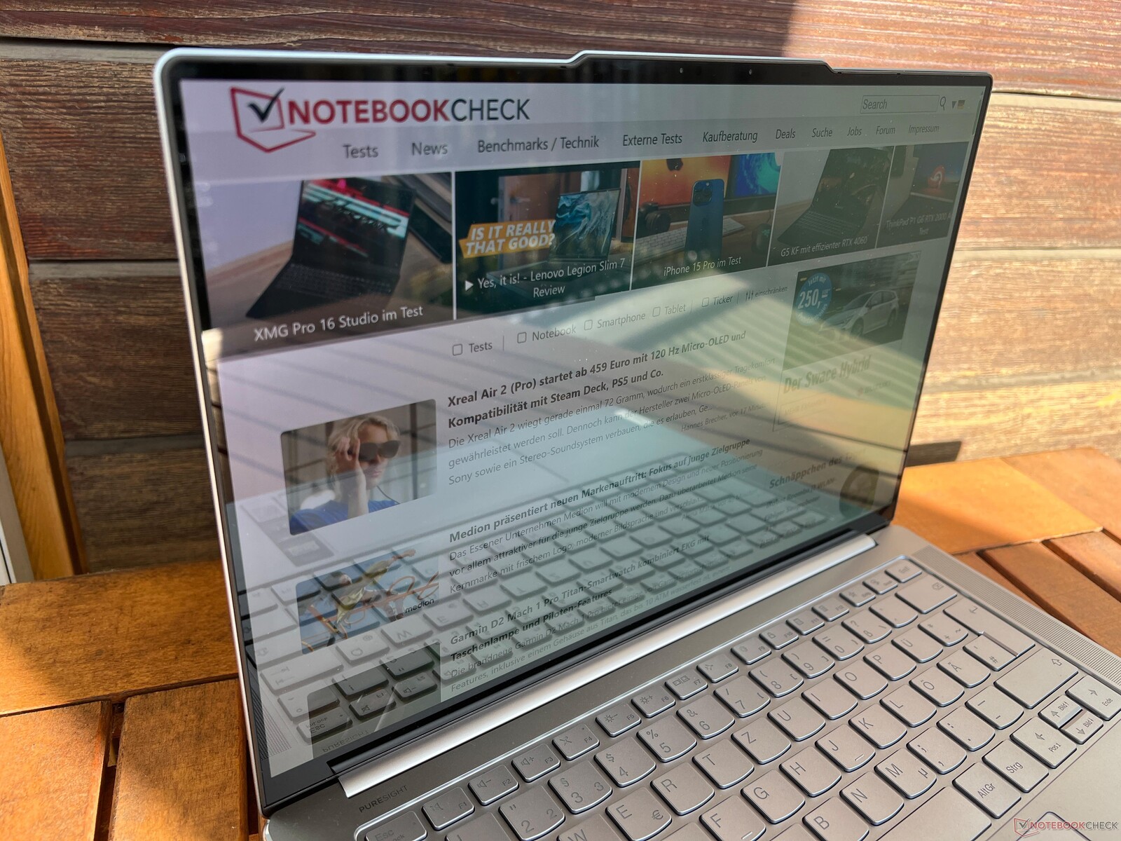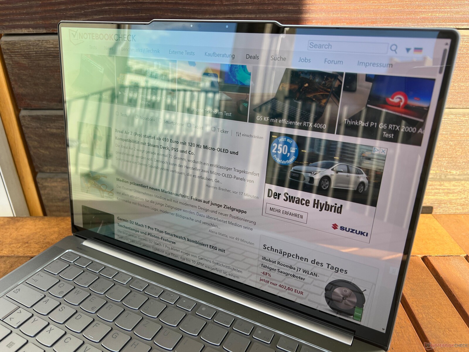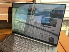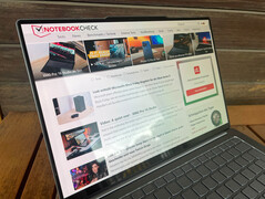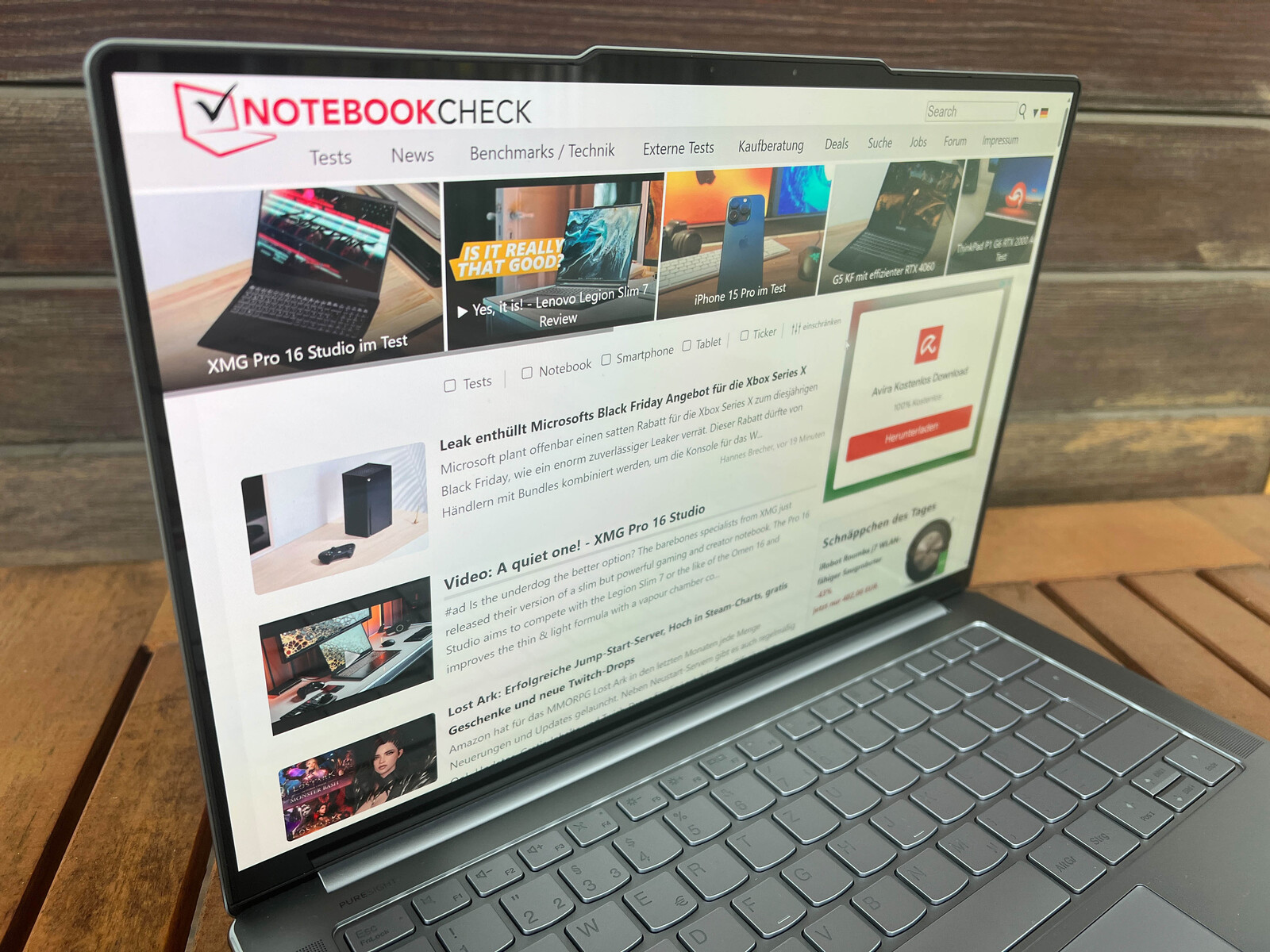 So far, the Yoga models were often equipped with 2.8K OLED screens, which had issues with a slight Moiré effect, especially on bright contents in combination with a short distance between you and the screen. The new Yoga Slim 7 14 G8 is the first device with a new 14.5-inch 2.9K OLED, which features the unusual resolution of 2944 x 1840 pixels (16:10). The screen is very glossy, but does not support touch inputs.