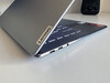 All in all, the laptop feels premium and there are no problems with the stability. We cannot twist the base unit and there are no creaking sounds, either, only the center keyboard area an be visibly pushed in under pressure. However, this should not be an issue during everyday typing. The slim lid is also pretty rigid, but the hinges cannot quite keep up. The lid is very light, but there is still some wobbling when you adjust the opening angle (up to 180 degrees), even though the hinges securely hold the lid in position at very small angles.