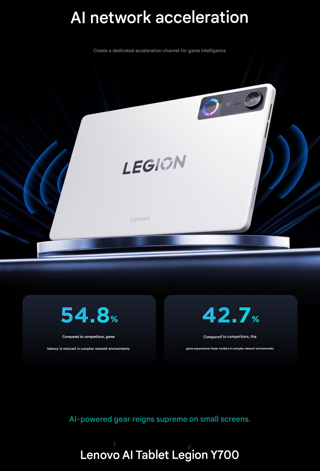In the new teaser, Lenovo says that the upcoming tablet can offer a more responsive online gaming experience than competing tablets. The brand claims that there can be up to a 54.8% difference in terms of latency in challenging network environments. This tech also seemingly reduces game stutters in such conditions.