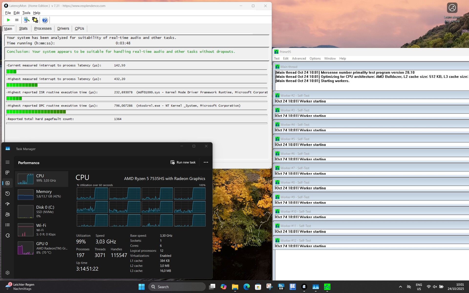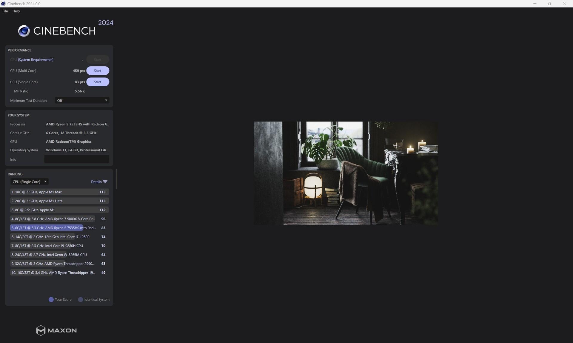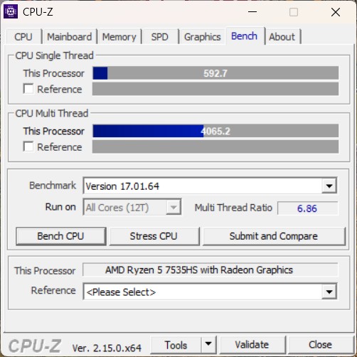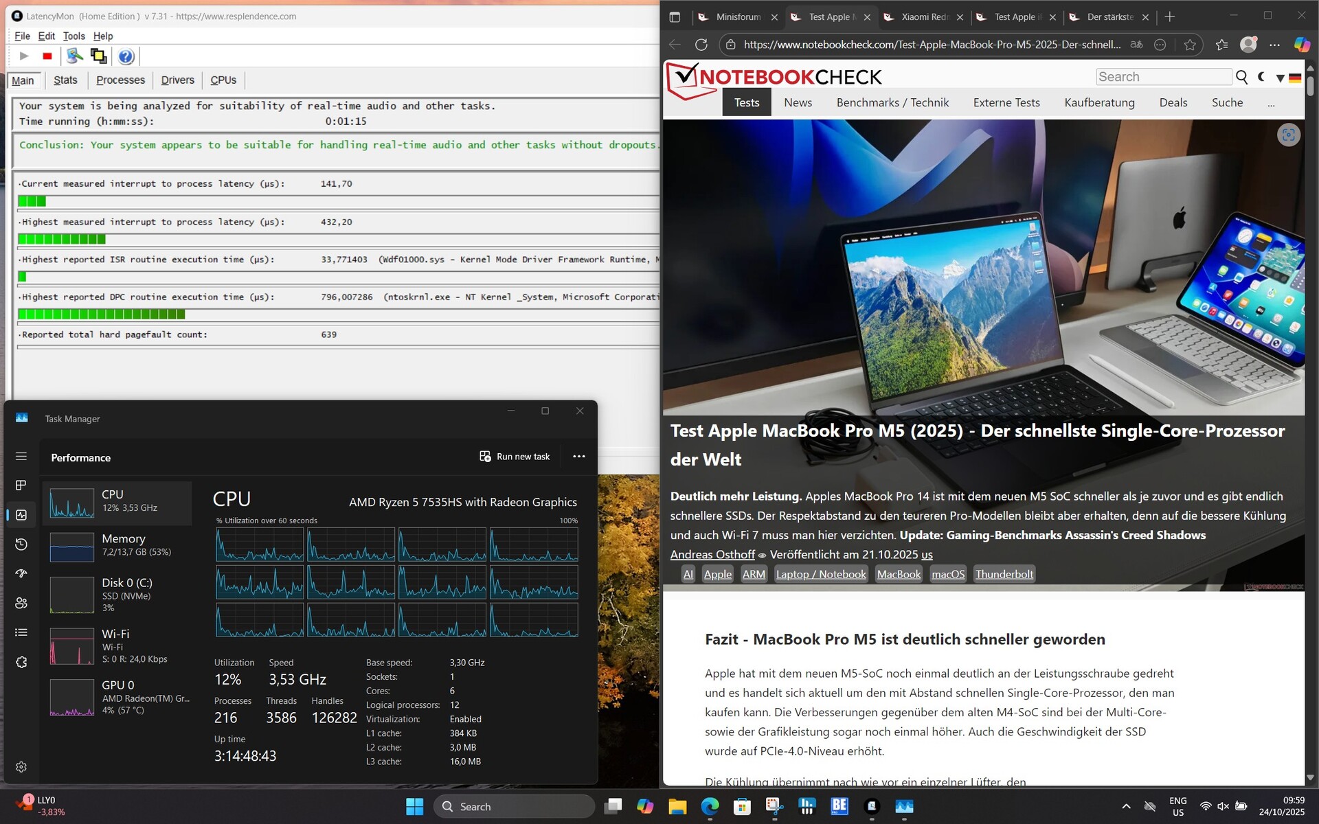 The Ninkear S14 uses the AMD Ryzen 5 7535HS, a powerful six-core processor with twelve threads that achieves clock speeds of up to 4.55 GHz. The CPU therefore offers sufficient performance for typical office applications, multimedia and light multitasking. Under continuous full load, however, the performance is somewhat limited by the system's power limit, which results in a slight drop in performance compared to more highly configured devices.