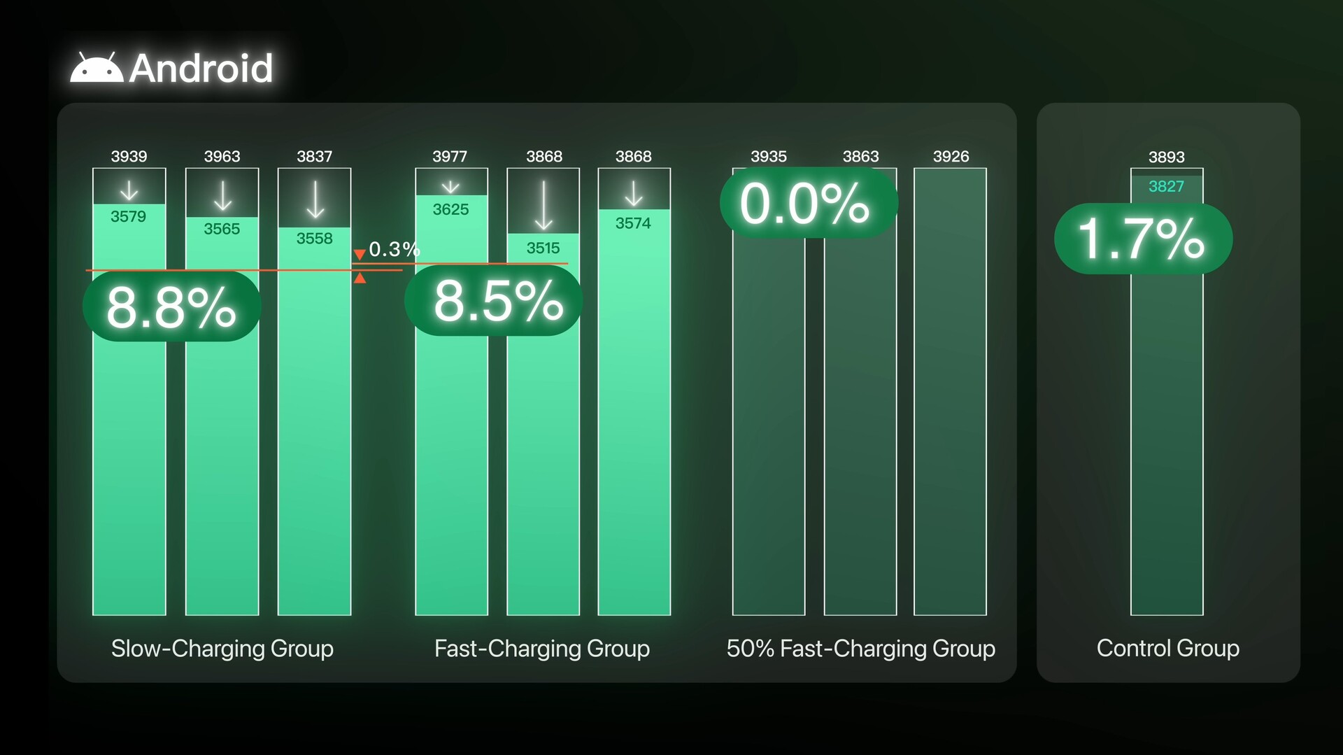 - Three iPhones and Android phones were placed in a special group that was only charged between 30% and 80%.