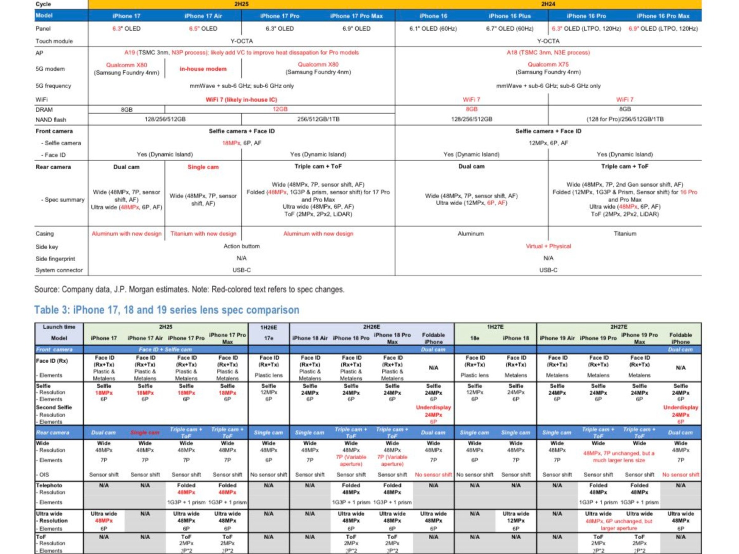 Industry analyst Max Weinbach posted a spec comparison by JP Morgan for upcoming iPhone models and it lists an iPhone Air 2 and an iPhone Air 3. Weinbach points out that JP Morgan and other such banks are “very good” at getting this kind of information from the supply chain. This suggests the Apple supply chain is preparing for the iPhone Air 2 and Air 3, or whatever they end up being called, despite sloppy sales for the iPhone Air.