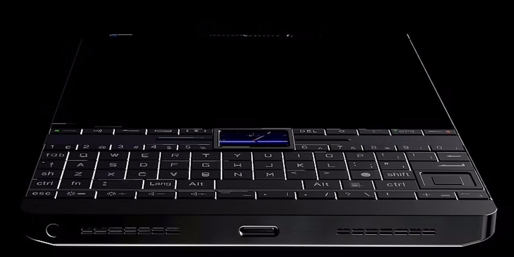 The keyboard is fairly large and includes a shortcut bar directly under the display, as well as dedicated numeric keys, which means numbers are not typed via secondary key assignments. This should allow for relatively fast typing. A second display is embedded in the keyboard and sports an always-on feature that can show the current time of day. When the device is in use, this display turns off but can still be used for inputs.