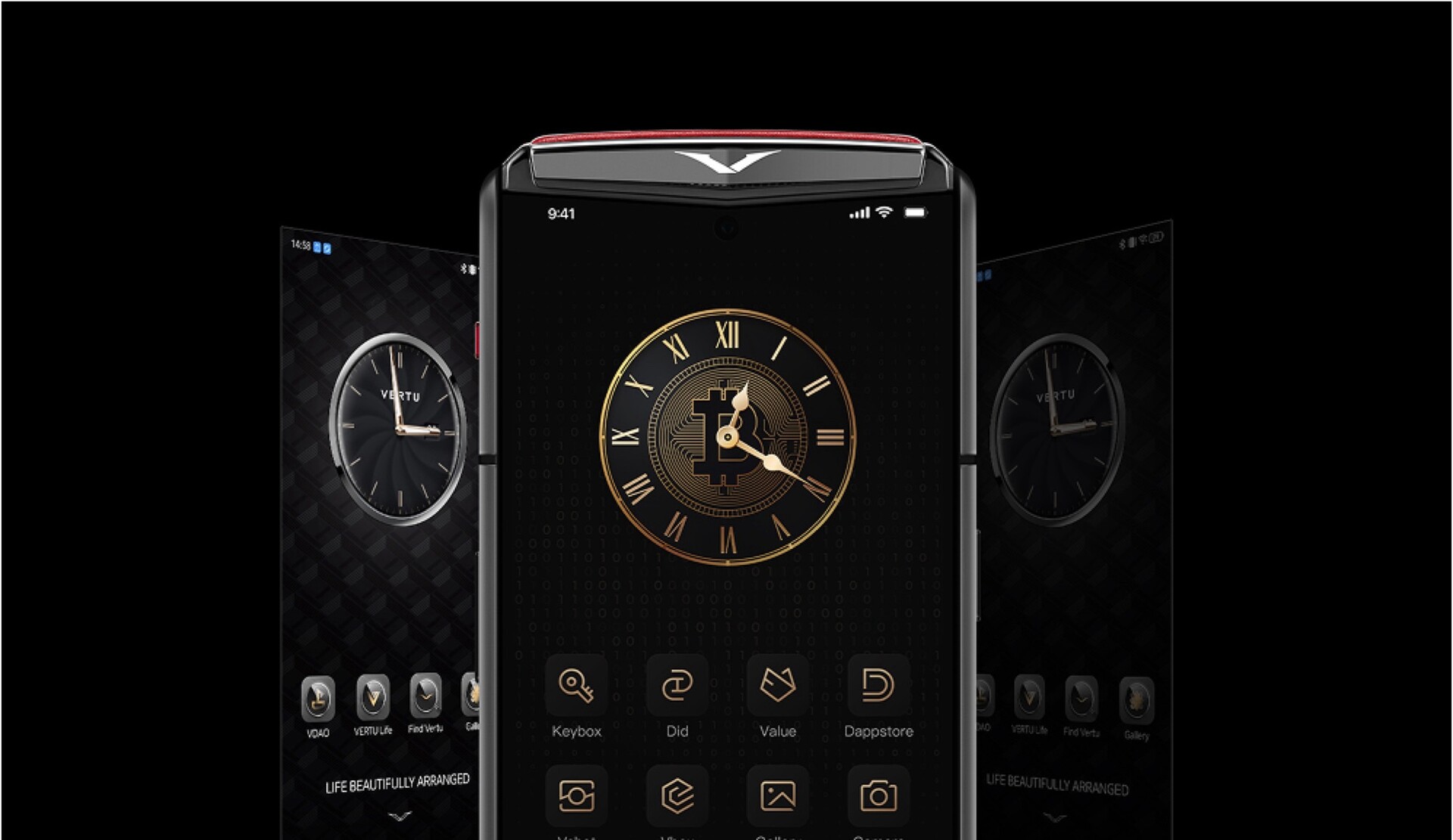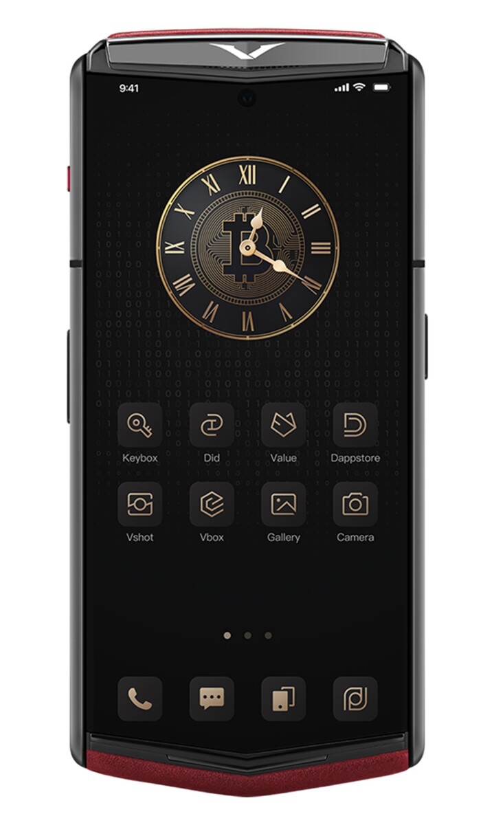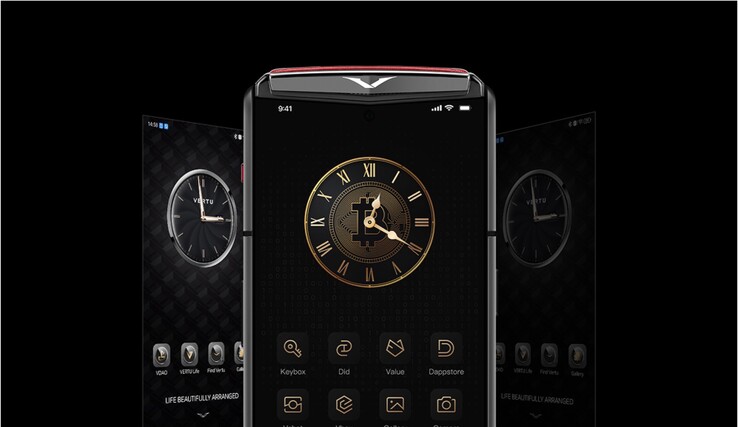 While no further technical specifications have been revealed thus far, the images already show that Vertu is focusing on crypto and blockchain technology. The smartphone apparently comes with an app store for blockchain apps and a Bitcoin theme. The camera app is supposed to be able to modify photos via AI and can remove glasses in a portrait, for instance. However, the purpose of the red button on the left side of the phone is still unclear at this point.