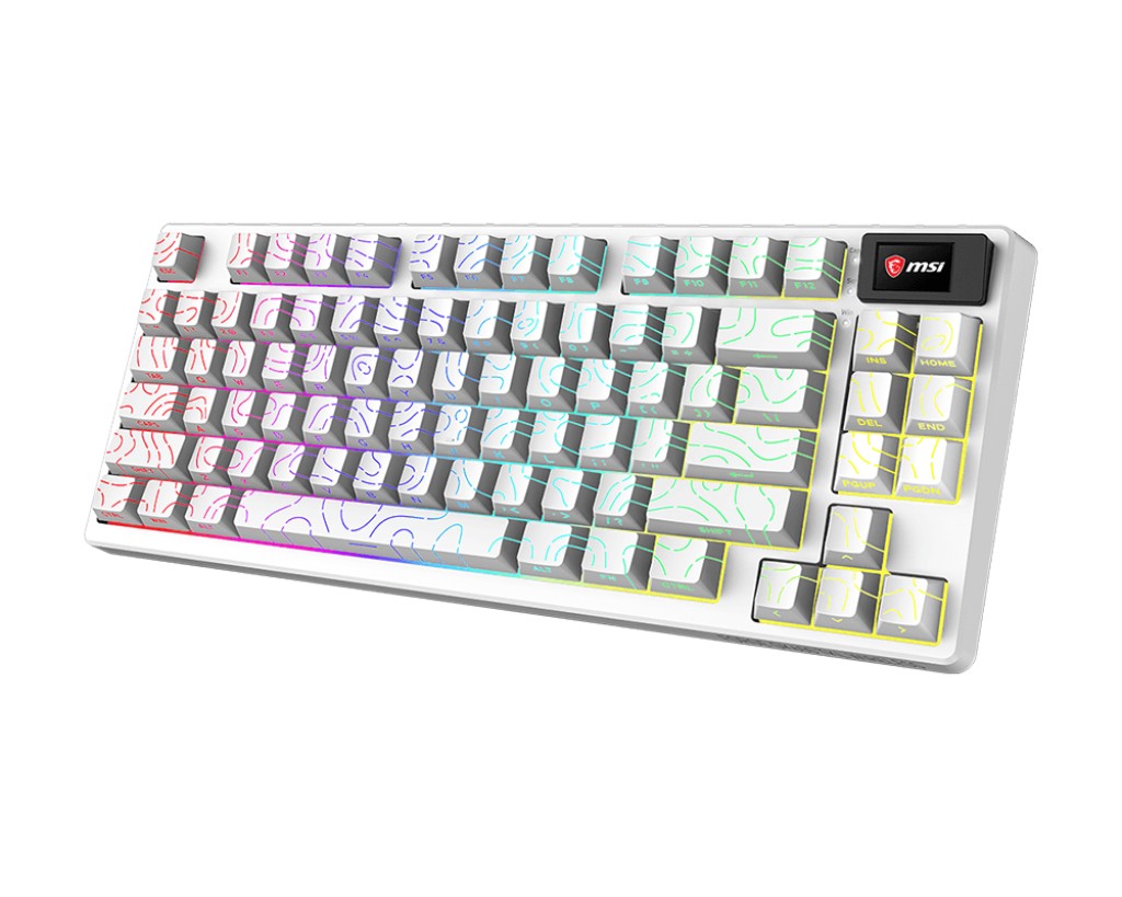 Of the three new versions, the Mars variant is the most eye-catching with space-themed keycaps that MSI says are inspired by Martian dunes and starry skies. Each keycap also has a transparent design at the bottom, allowing the RGB lighting to shine through for a bolder look than conventional keyboards. By contrast, the Topo Blue and Topo White editions use side-printed keycaps with shine-through contour patterns to achieve a unique lighting effect.