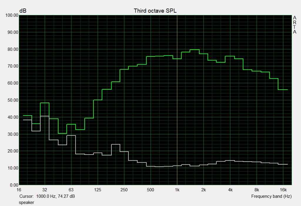 (±) | linearity of bass is average (10.5% delta to prev. frequency)