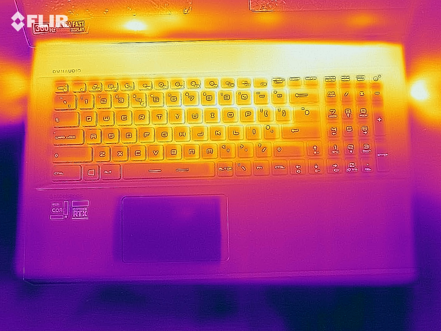 (+) The palmrests and touchpad are reaching skin temperature as a maximum (34 °C / 93.2 F) and are therefore not hot.