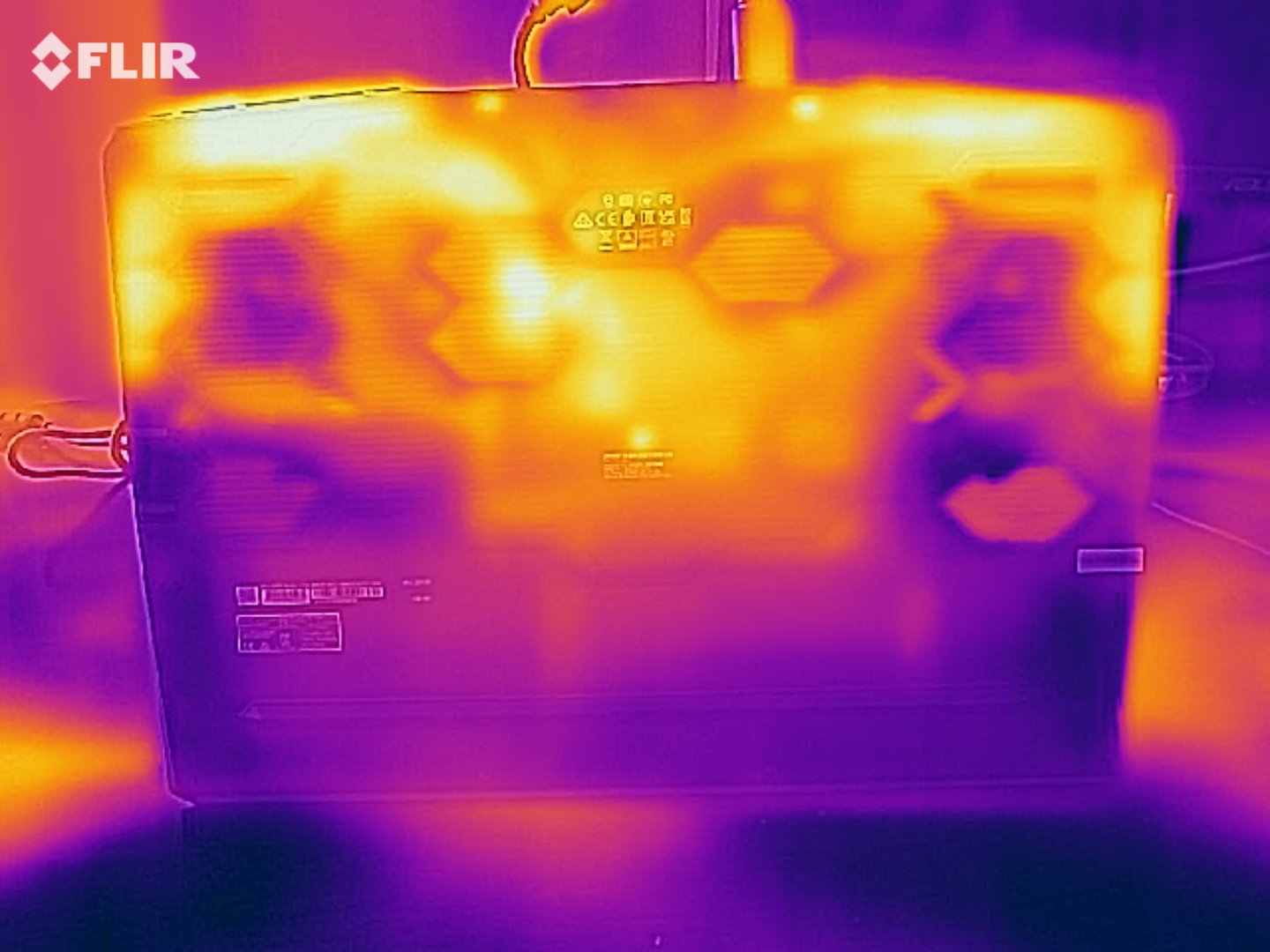 (-) The maximum temperature on the upper side is 46 °C / 115 F, compared to the average of 40.5 °C / 105 F, ranging from 21.2 to 68.8 °C for the class Gaming.