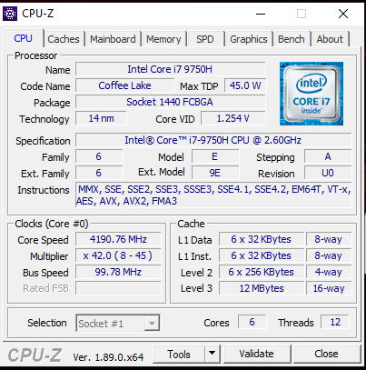 At the heart of the 9SG is an Intel Core i7-9750H processor, the successor to the popular Core i7-8750H. The Core i7-9750H is built on the Coffee Lake Refresh architecture and has a 45-W thermal design power (TDP) with a 2.6 GHz base clock speed. The CPU utilises Intel Hyper-Threading to execute up to 12 threads simultaneously and Intel Turbo Boost to achieve 4 GHz across all cores. Incidentally, the Core i7-9750H can peak at 4.1 GHz on five cores and 100 MHz more for every core it is not using, resulting in a 4.5 GHz single core boost clock.