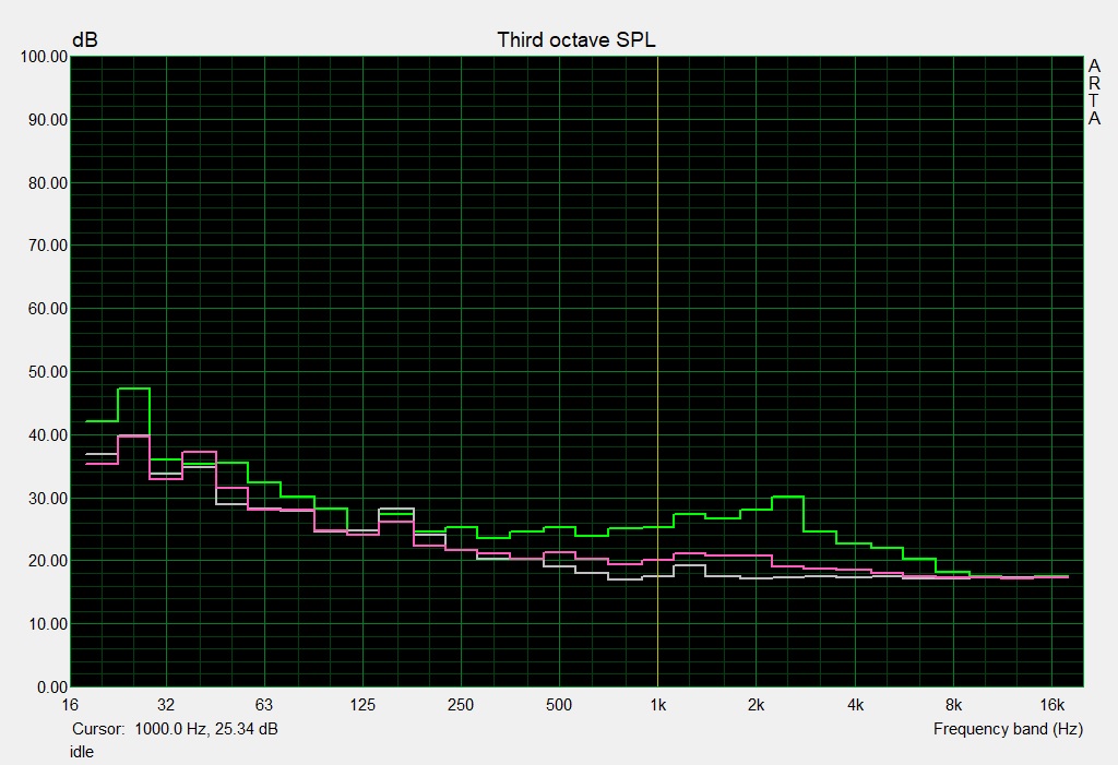 | Idle Average * (dB) | 32 | 32 -0% | 28.6 11% | 28.2 12% | 32 -0% | 31.6 1% | 27.6 ? 14% |
