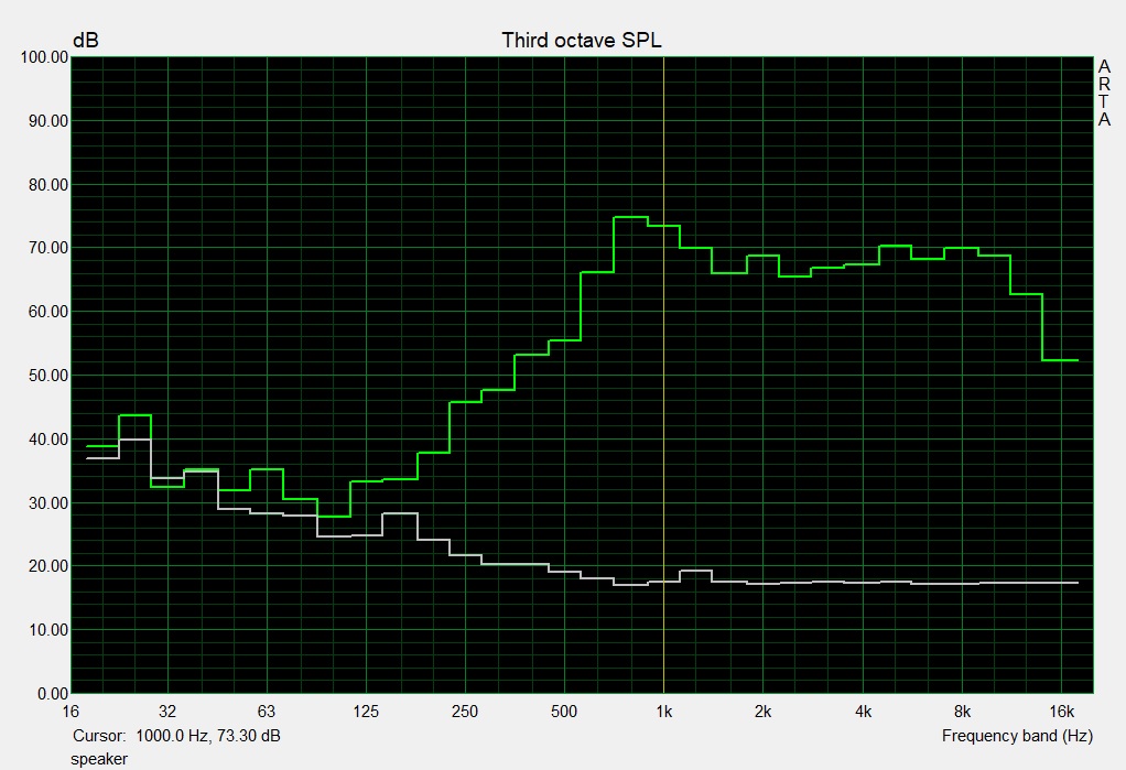 (±) | linearity of bass is average (8.7% delta to prev. frequency)