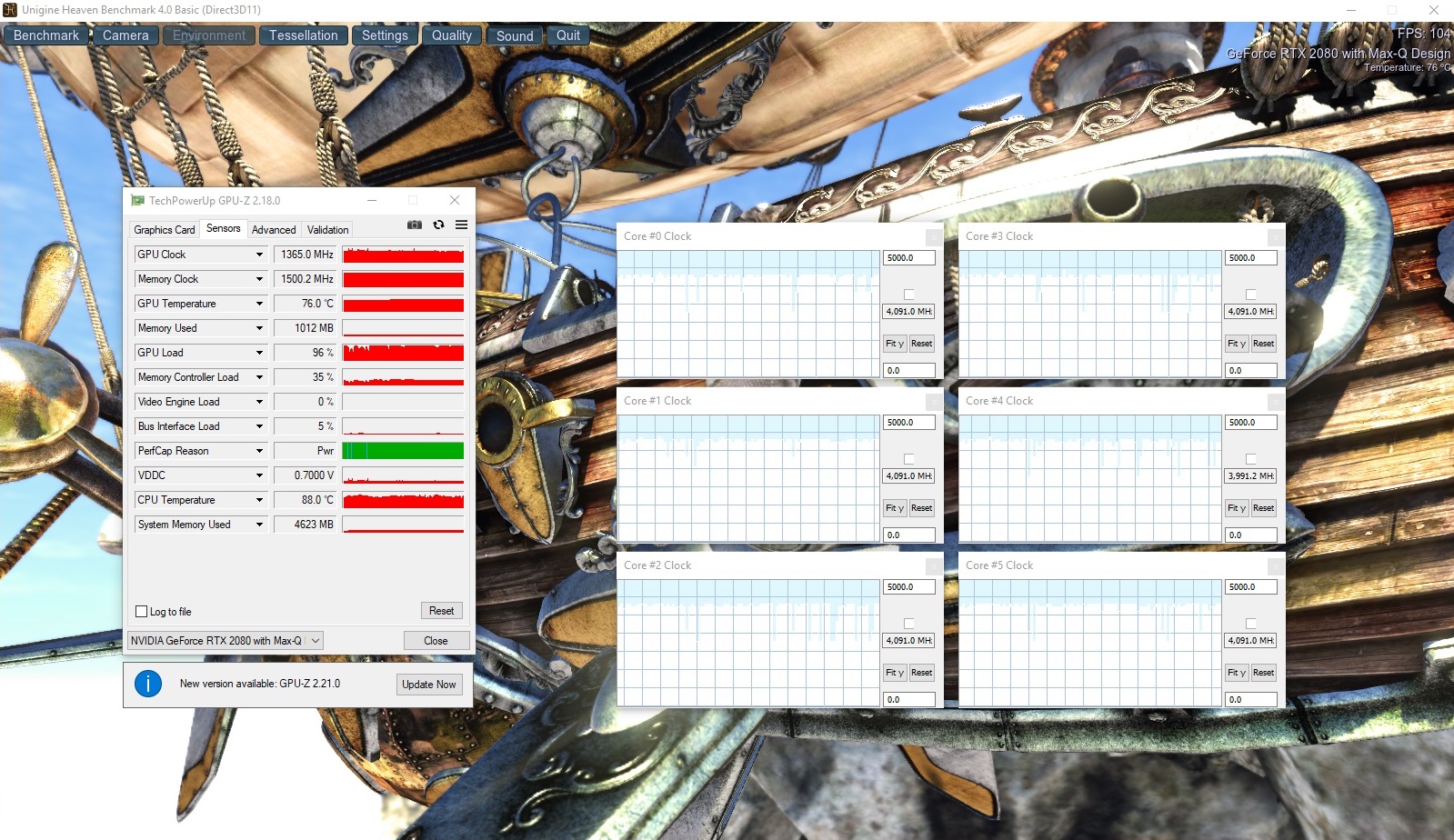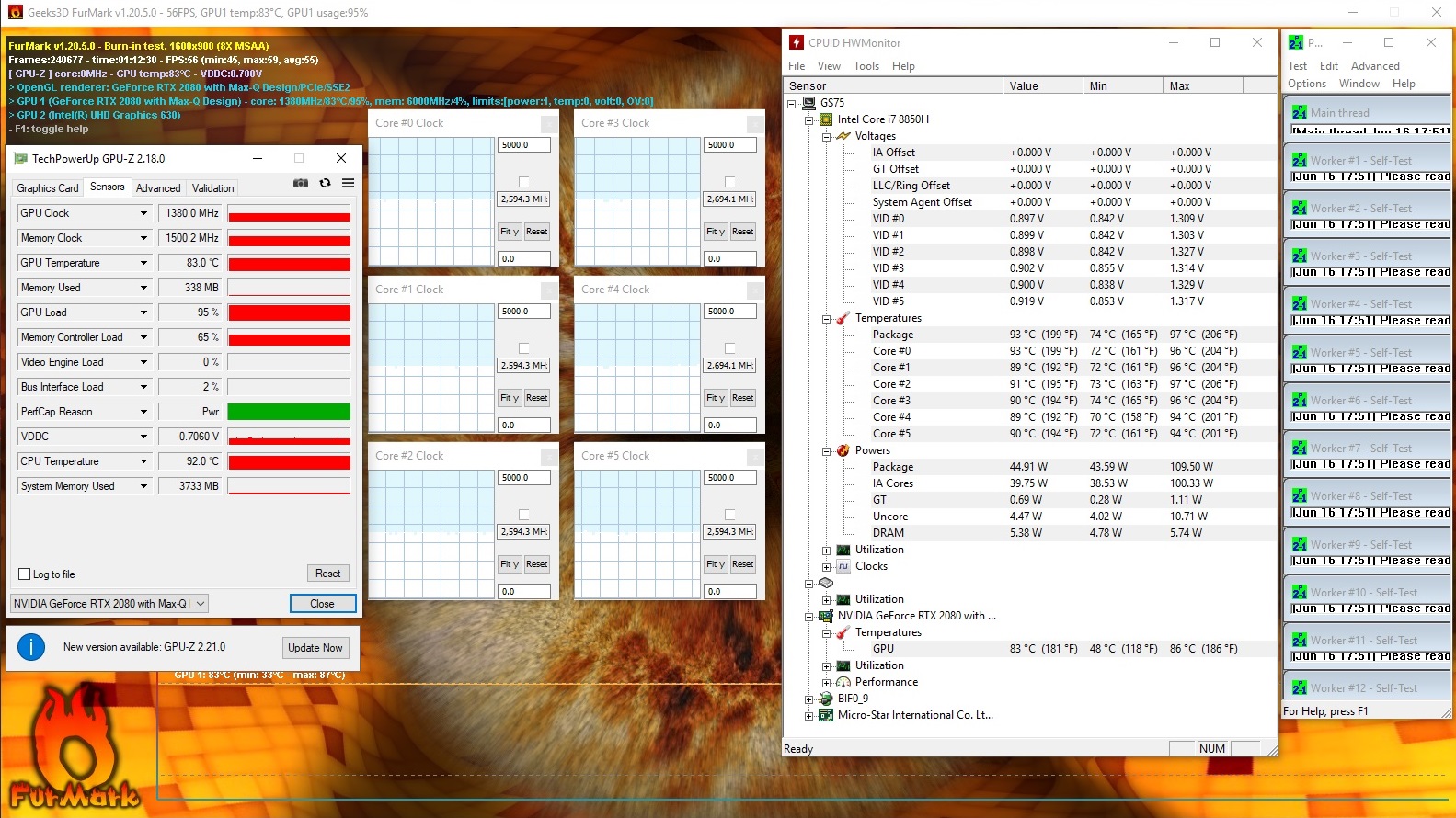 As always, we subjected our review unit to a combined FurMark and Prime95 stress test to determine how well the system manages its performance under extreme load. We left the stress test running for at least an hour and recorded any clock speed changes. The 9SG maintained its CPU at 2.6 to 2.7 GHz when connected to the mains, with the GPU hovering at around 1,380 MHz. The CPU and GPU dropped to 1.2 GHz and 300 MHz respectively though when we re-ran the test with the charger disconnected.