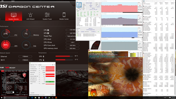 Power consumption when idling with the integrated GPU active will draw about 29 W to 33 W depending on screen brightness and wireless activity. When gaming, however, expect this configuration to draw about 224 W to be over 100 W more than the GT73VR 6RE GTX 1070 SKU under similar conditions. Maximum load with both Prime95 and FurMark running simultaneously on High Performance (not Turbo Performance) will draw about 303 W.