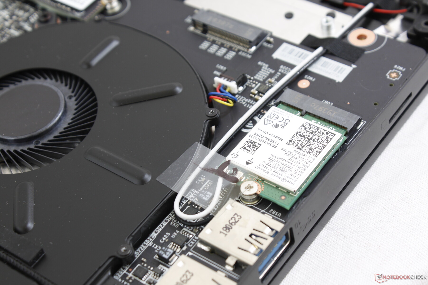 The Intel 9560 comes standard for Wi-Fi 5 or 802.11ac connectivity and integrated Bluetooth 5. We recently upgraded our wireless equipment with the Netgear RAX200 connected to a multi-gig server to more properly test 802.11ac speeds and faster. Transfer rates average about 1200 Mbps when standing one meter away from the router against a theoretical 1.73 Gbps. We didn't experience any notable connectivity issues during our time with the unit.