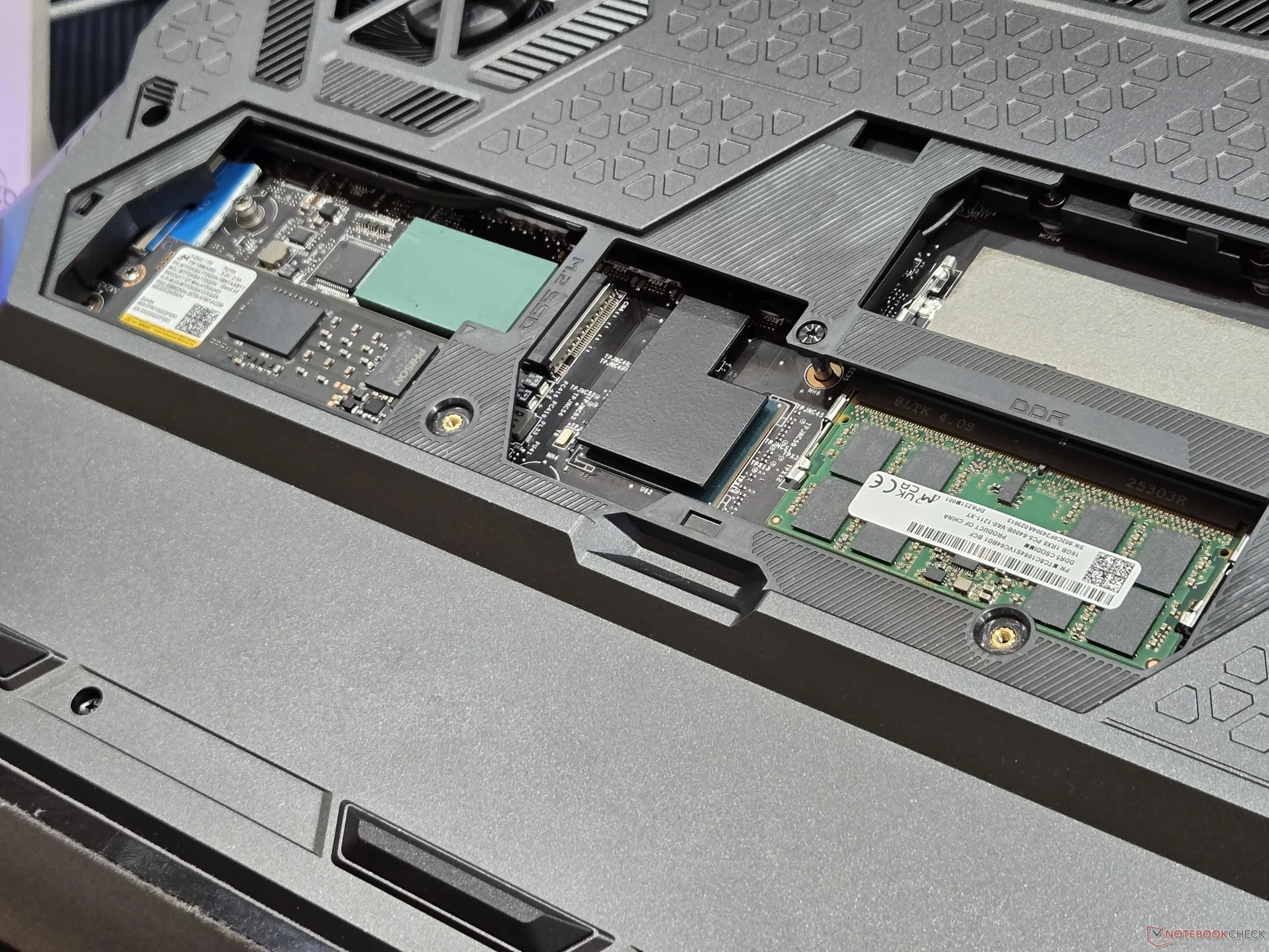 Unveiled just a few weeks ago at CES 2026, the new Raider 16 HX Max will run on familiar Intel Arrow Lake-HX CPUs and Nvidia Blackwell hardware as the 2025 model. The chassis has nonetheless been redesigned this year with a new hatch on the bottom panel for easier access to upgradeable components as shown by the images below. In this case, owners will be able to install up to two DDR5 SODIMM modules and two M.2 PCIe5 SSDs without needing to open up the entire bottom panel.