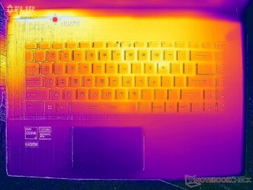 (+) The maximum temperature on the upper side is 39.8 °C / 104 F, compared to the average of 40.4 °C / 105 F, ranging from 21.2 to 68.8 °C for the class Gaming.