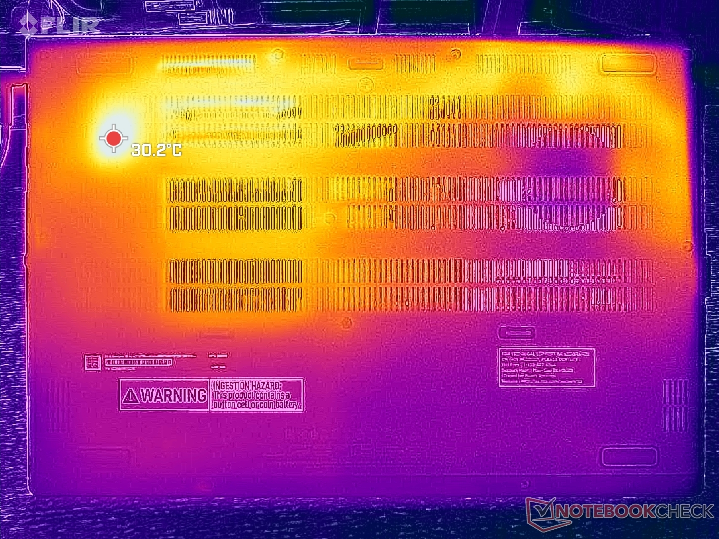 (+) The palmrests and touchpad are cooler than skin temperature with a maximum of 30.6 °C / 87.1 F and are therefore cool to the touch.