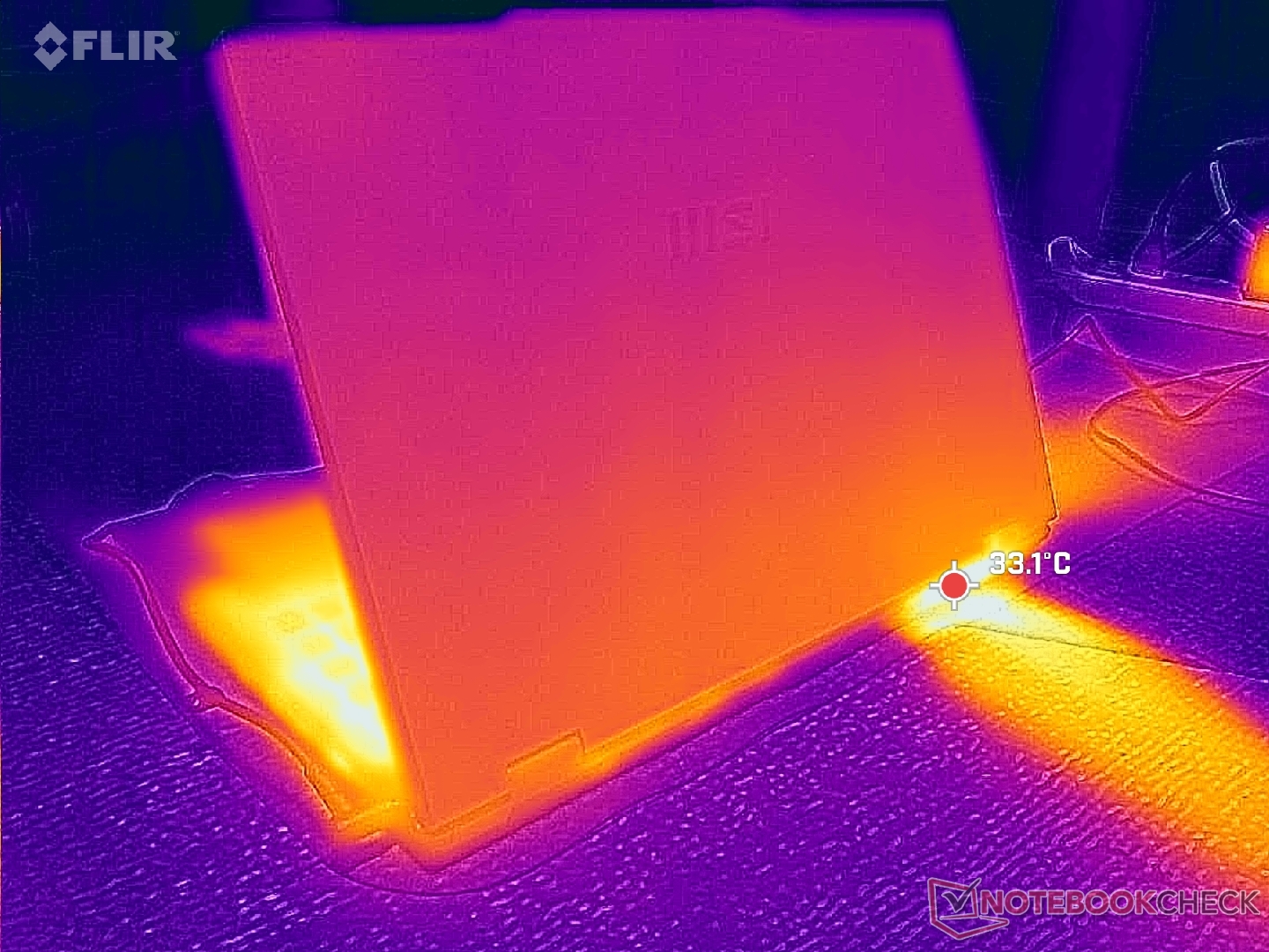 (-) The average temperature of the palmrest area of similar devices was 27.5 °C / 81.5 F (-3.1 °C / -5.6 F).