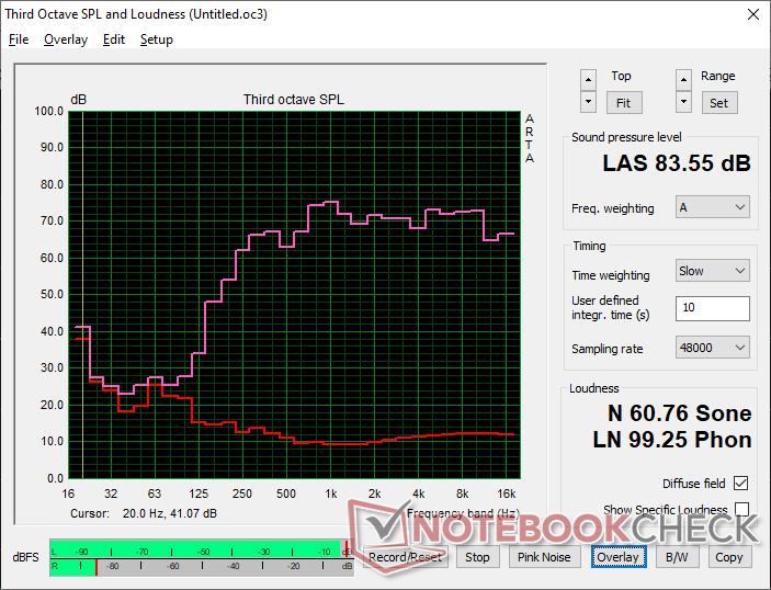 (+) | speakers can play relatively loud (83.6 dB)
