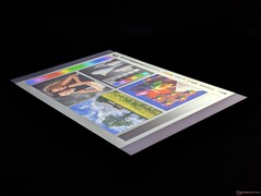 The base option lacks sRGB coverage and is limited to a 60 Hz refresh rate in contrast to the far superior OLED option. Contrast is otherwise pretty good for an IPS panel at over 1500:1.