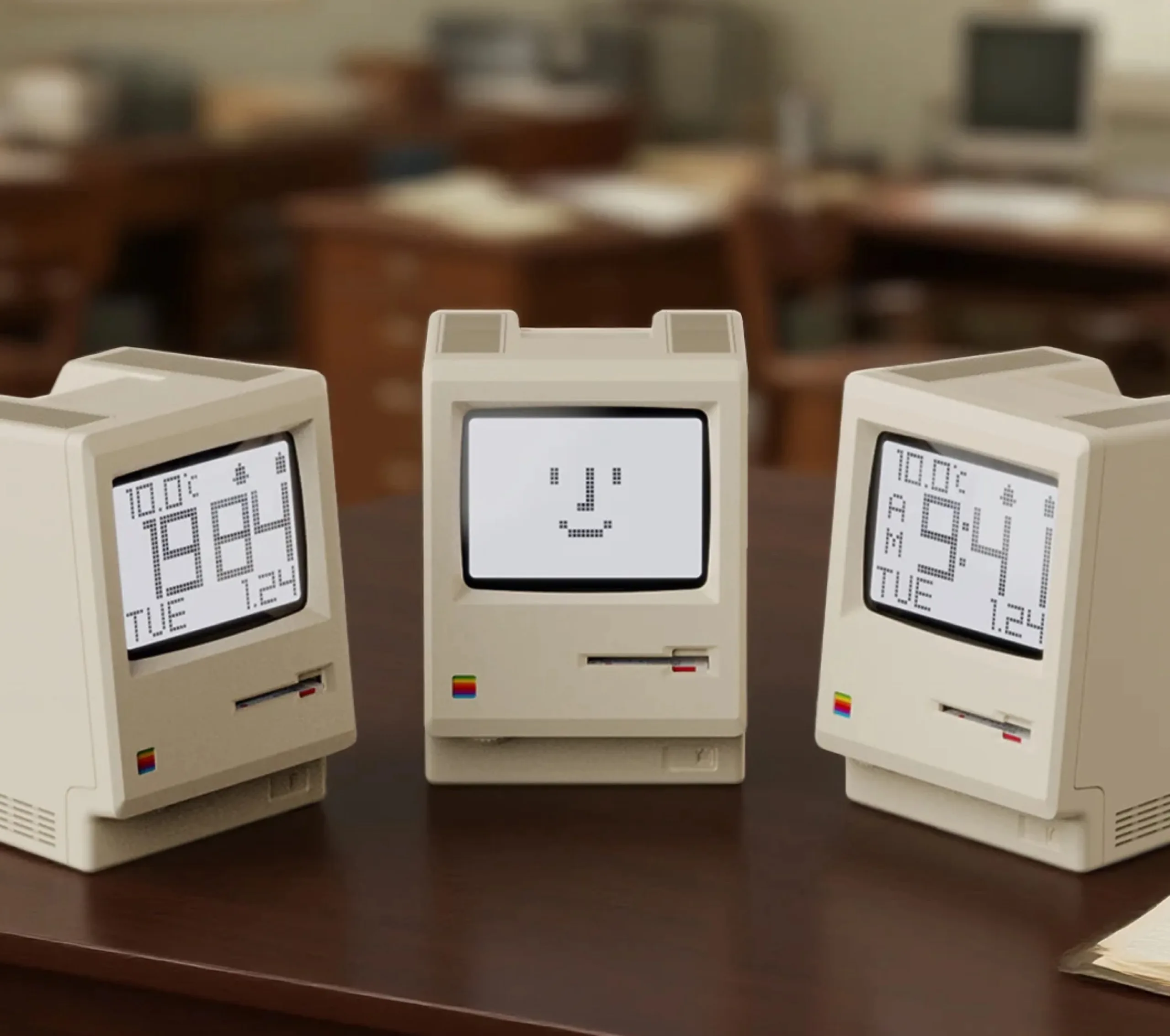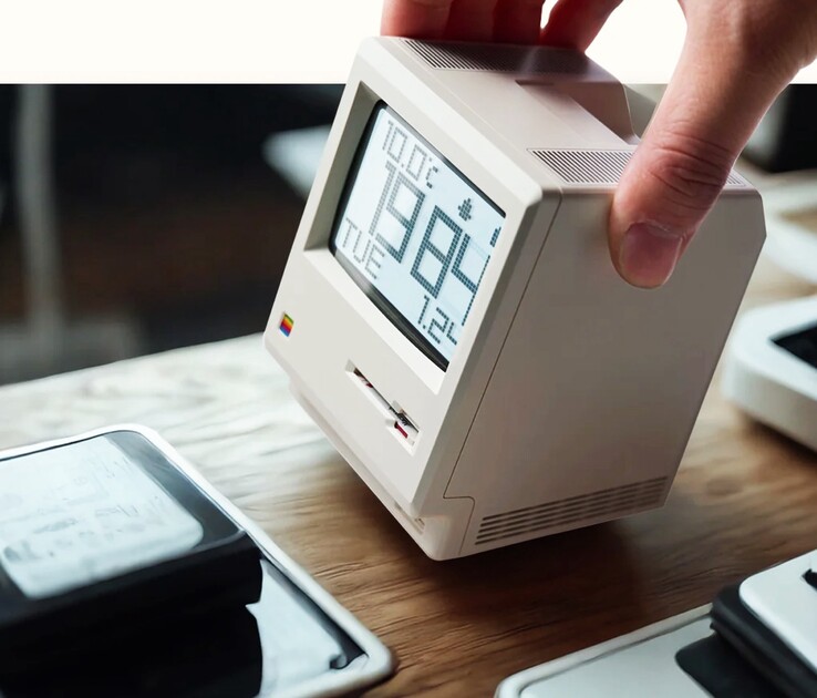 The Kokogol Maclock is modeled on the first Macintosh from 1984. The design is very detailed: although the colorful Apple logo from the 1980s had to be replaced with a colorful square for copyright reasons, the digital clock still displays the characteristic macOS Finder interface.