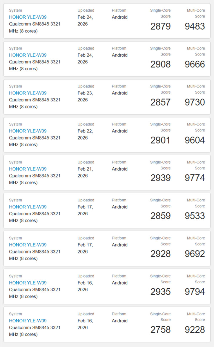 As always, Geekbench provides a model number rather than a retail name. However, Honor has already confirmed that the MagicPad 4 is associated with the model number 'YLE-W09'. Thus, we suspect the results reproduced below have been achieved by reviewers ahead of the tablet's official release on March 2.