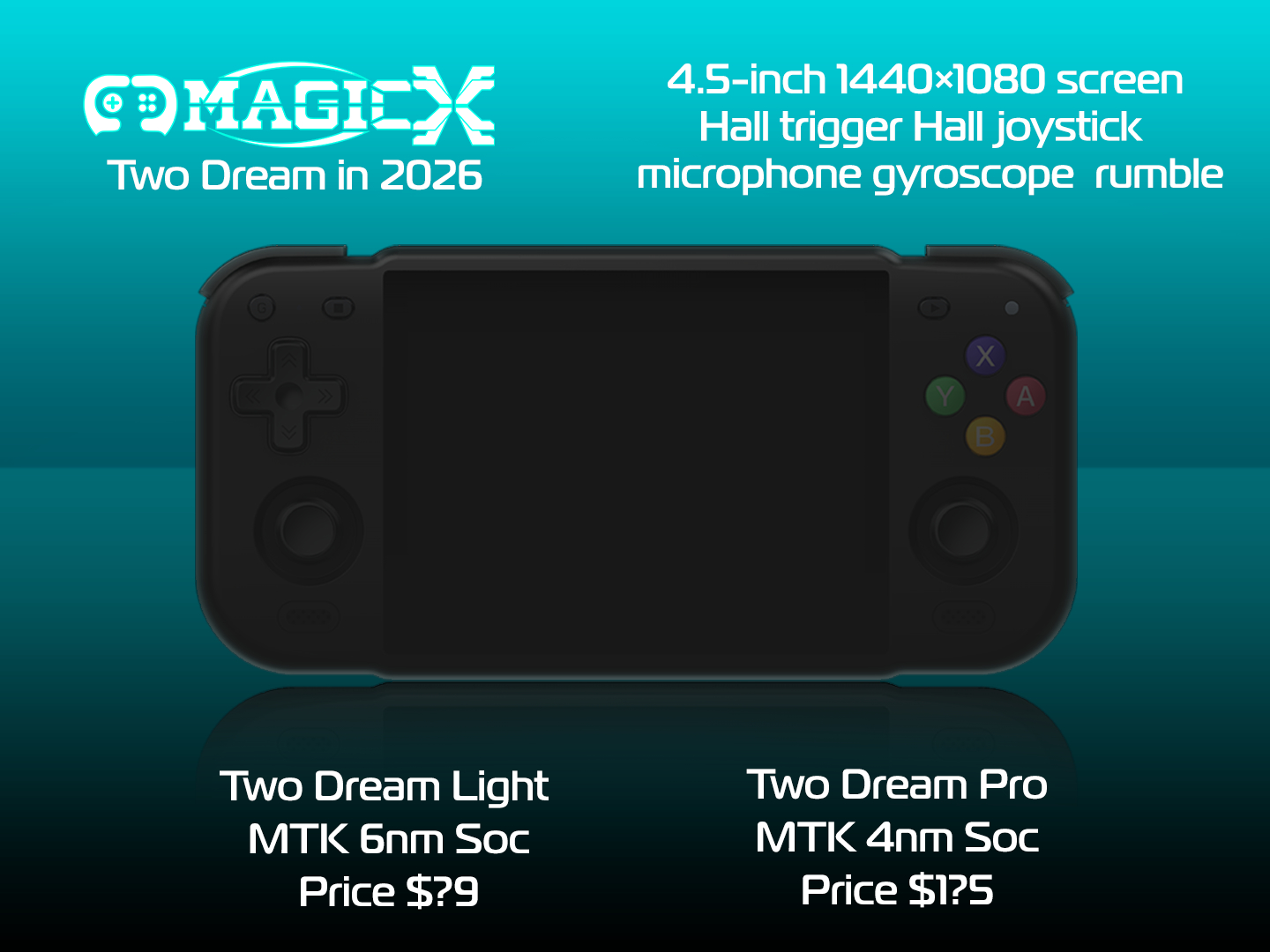 Now, MagicX has confirmed the imminent arrival of two new handhelds. At this stage, it is unclear whether the company plans to release the One Retro 45, One Flip 50 and Two DS 46 first. While we await more details about those three handhelds, MagicX has outlined initial information about the Two Dream Light and Two Dream Pro.