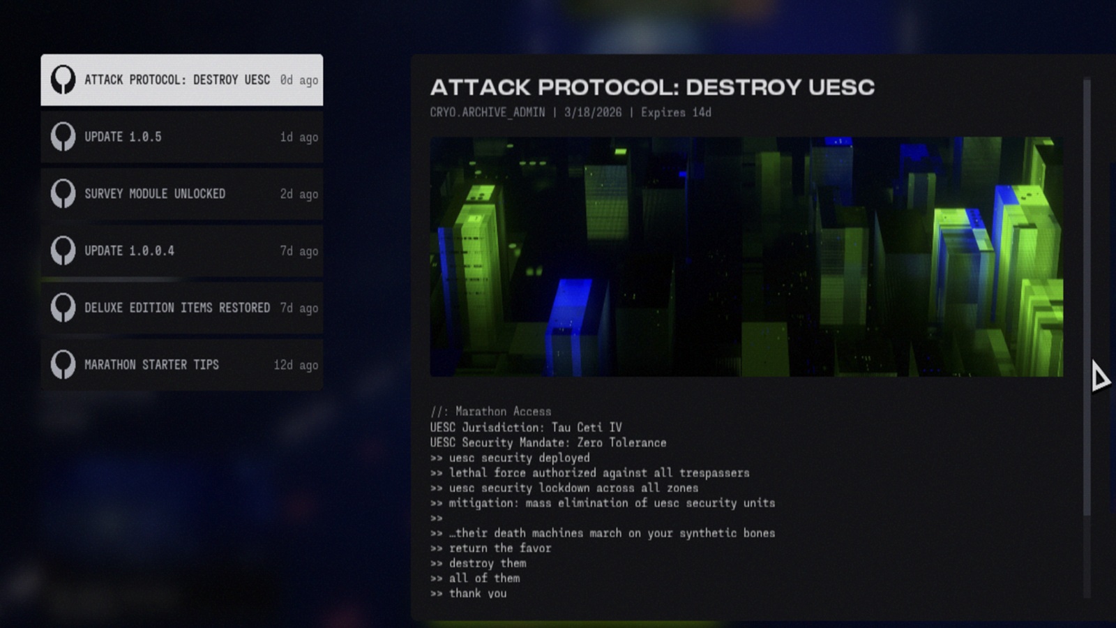 Major Marathon update 1.0.5 adds Cryo Archive, downed exfil, and UI tweaks
