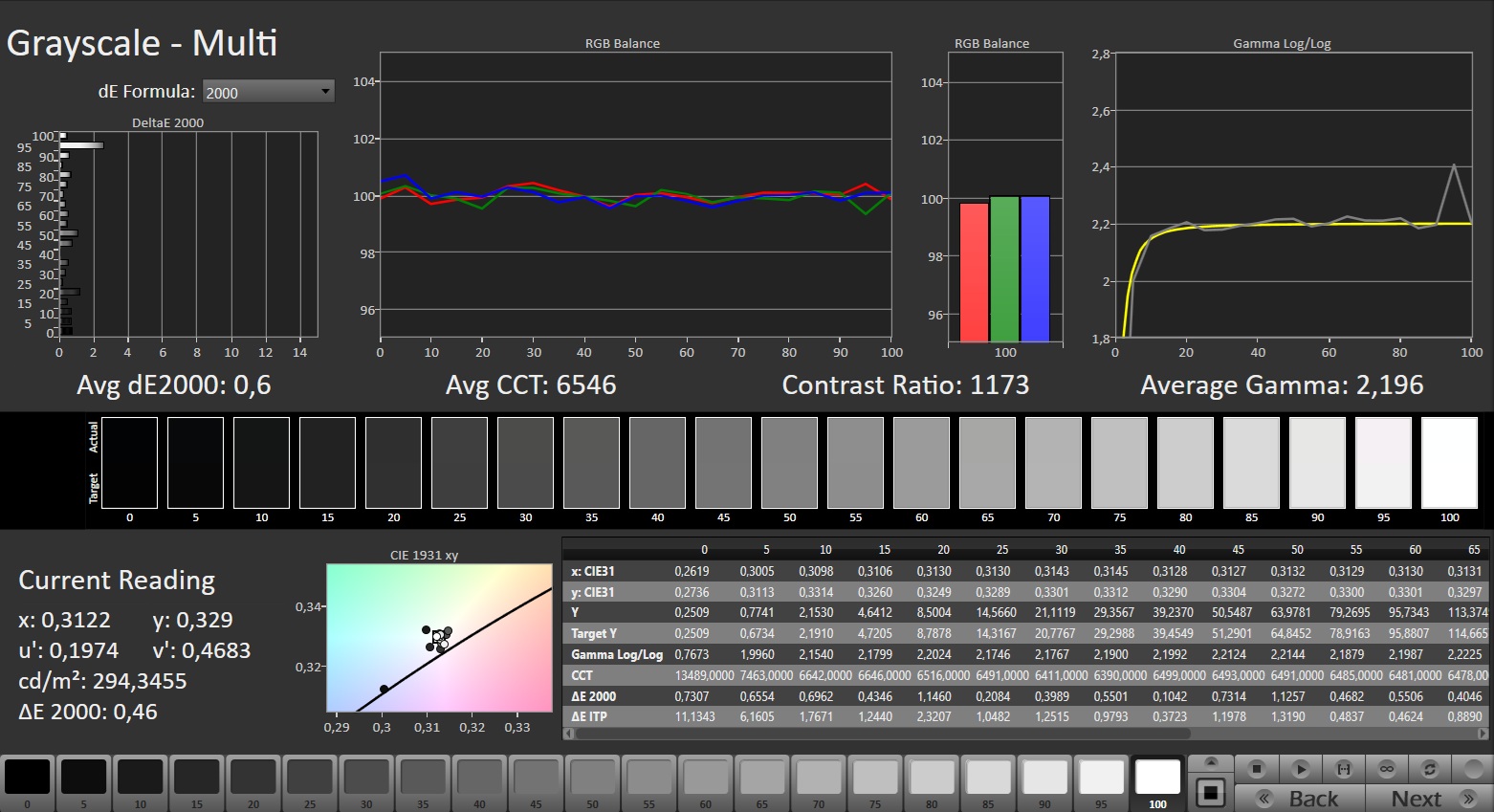 | Greyscale dE 2000 * | 7.4 | 4.46 40% | 5.6 24% | 1.8 76% | 3.4 54% |